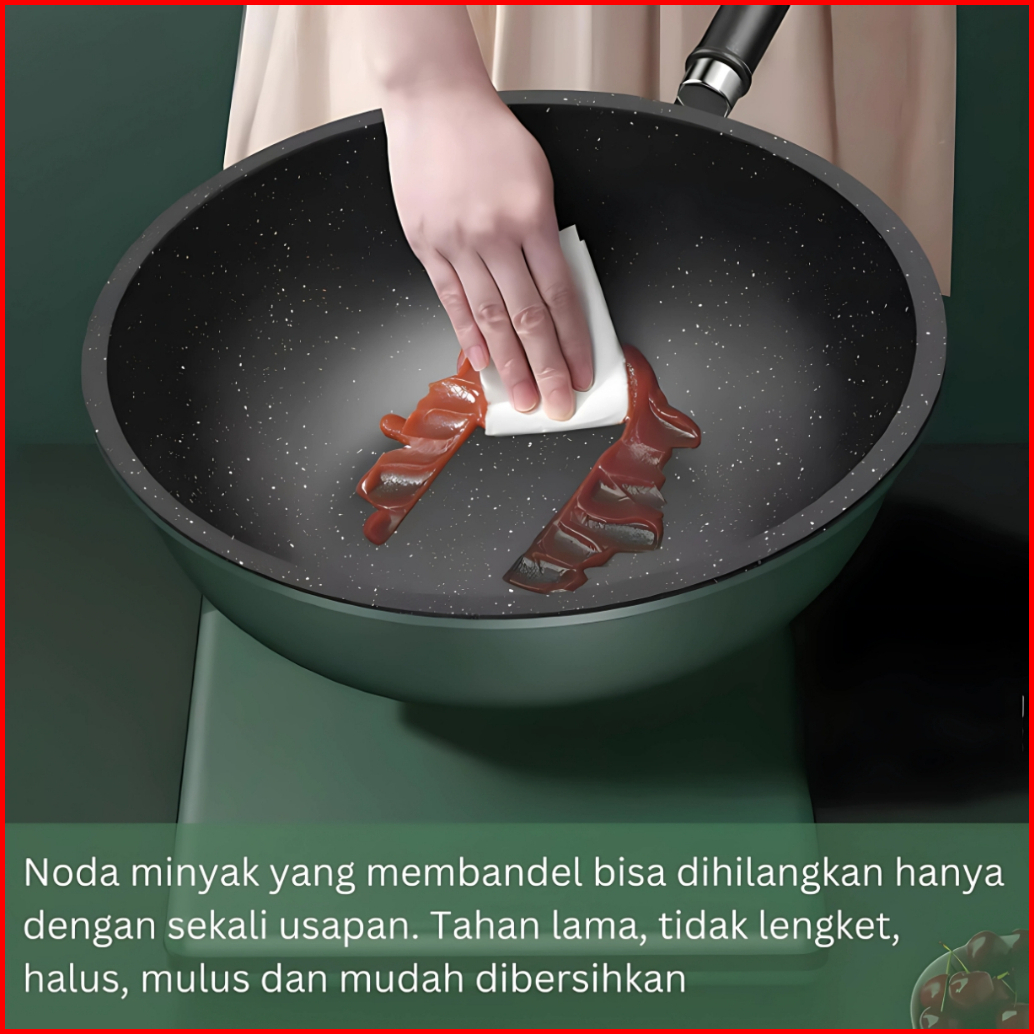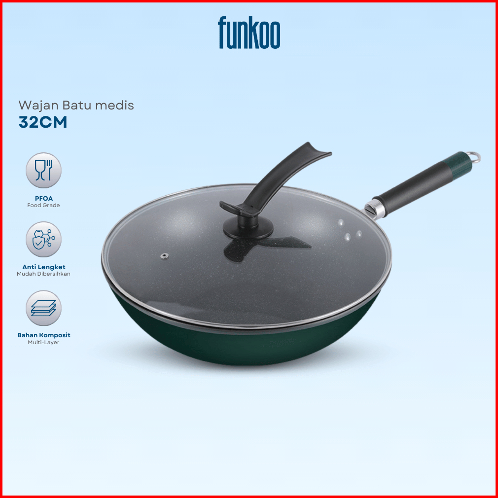 Funkoo Wajan Penggorengan Anti Lengket Batu Medis Diamond Wok Pan High Quality Ukuran 32 Cm