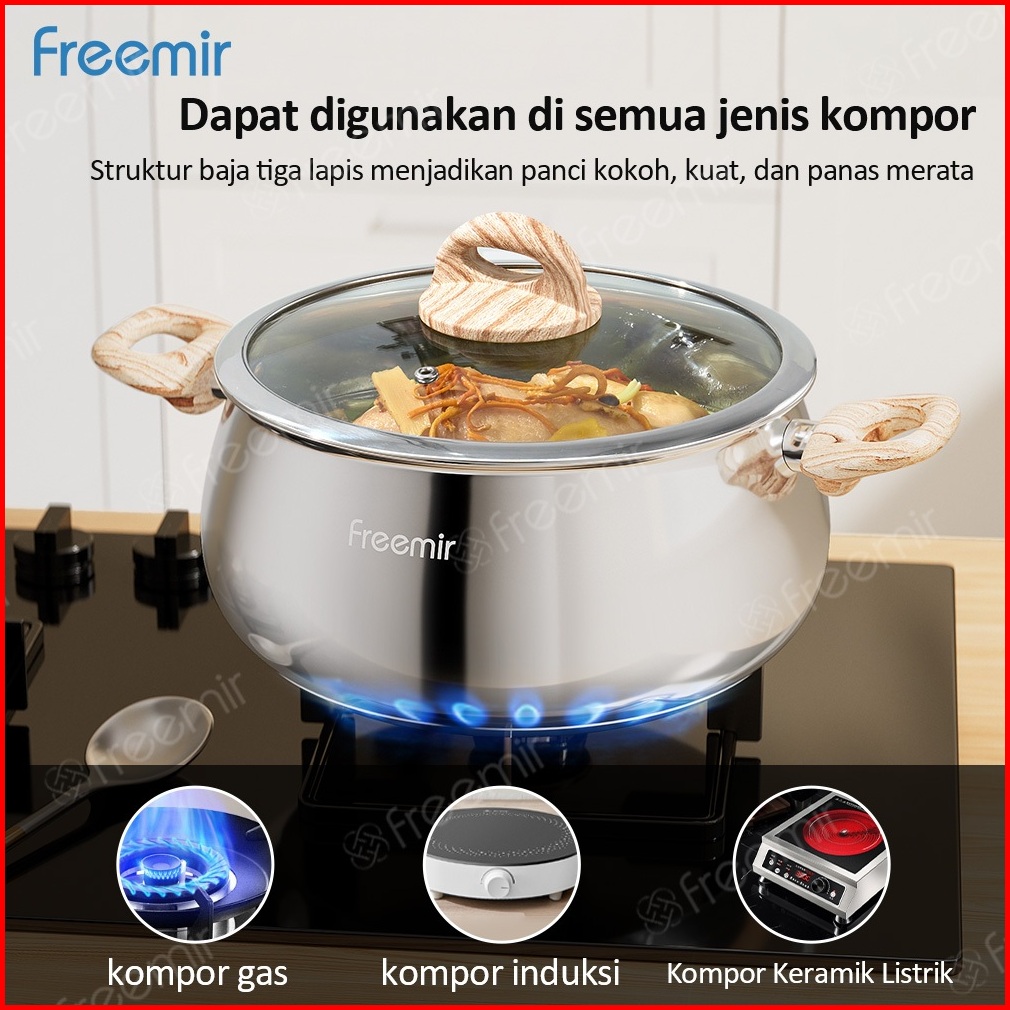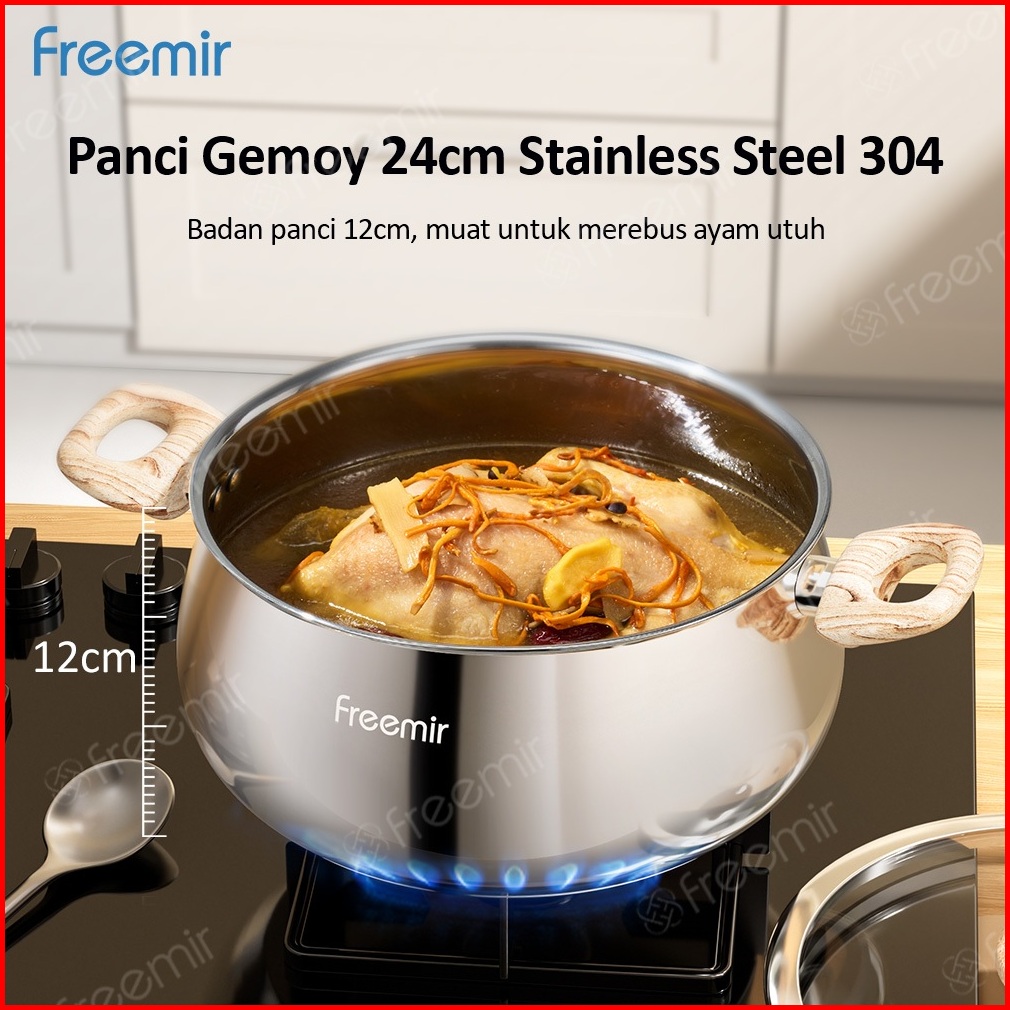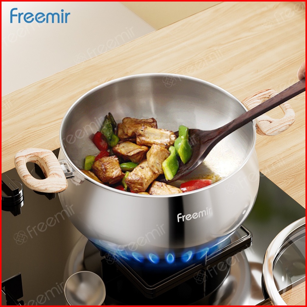 New Freemir Gemoy Stainless Wajan Panci 24cm Sus 304 Kapasitas 5l Foodgrade Serbaguna Bisa Merebus