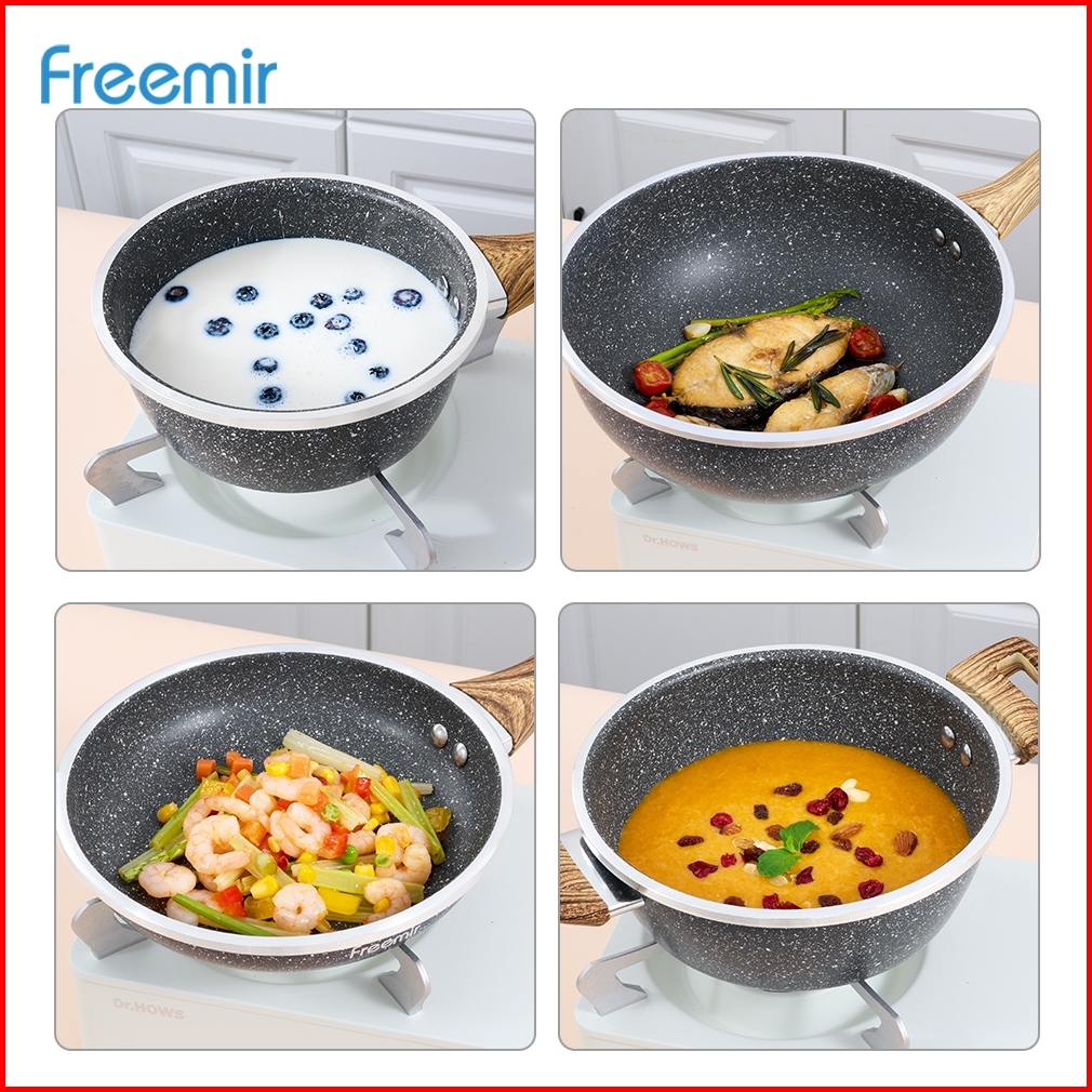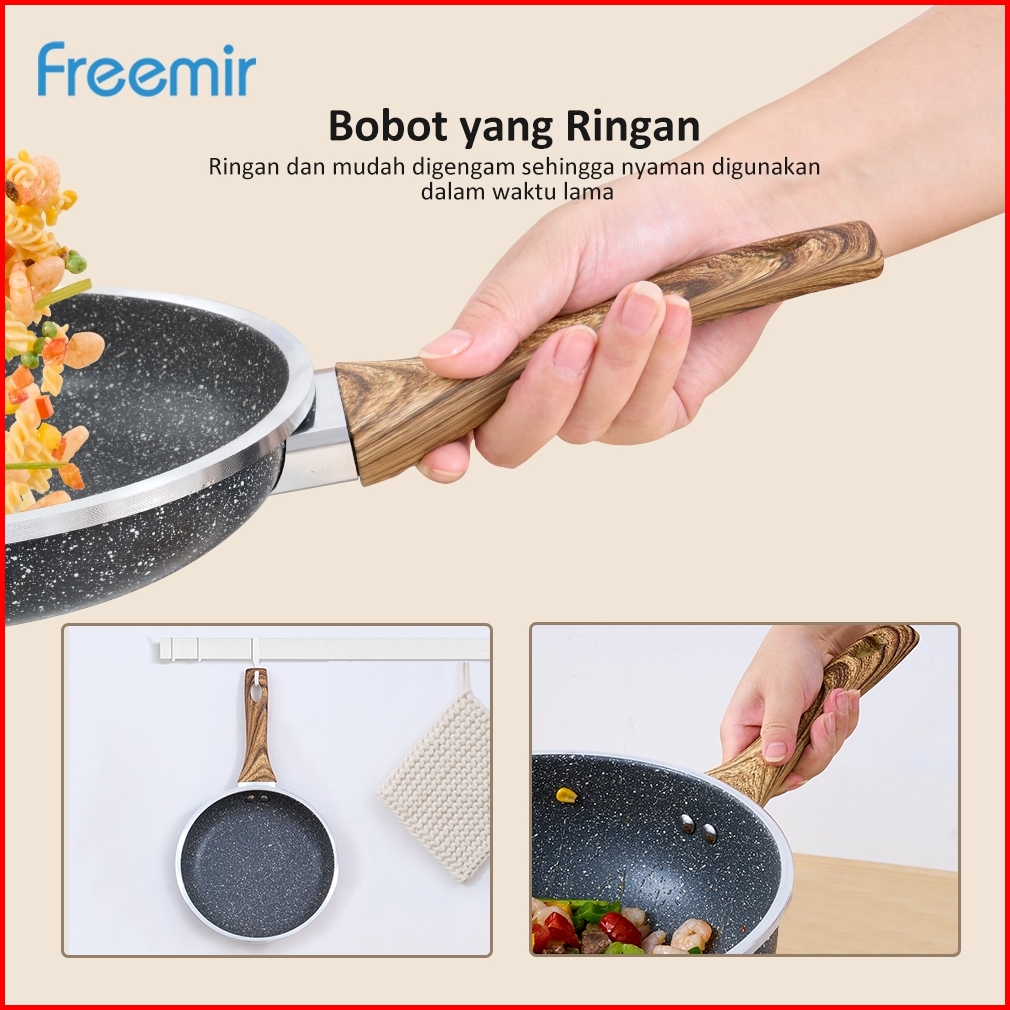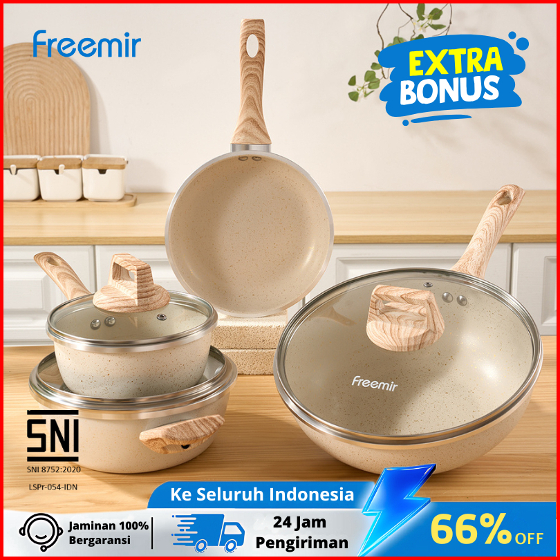 Freemir Set 7 Pcs Wajan Panci Anti Lengket Lapisan Granit Alat Masak Lengkap Tutup Kaca