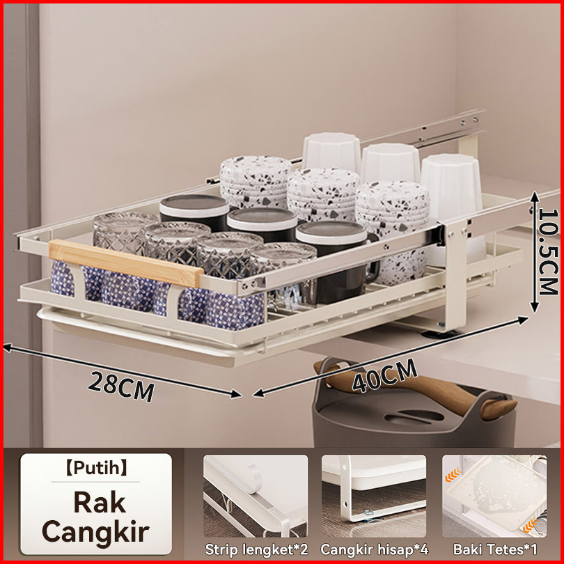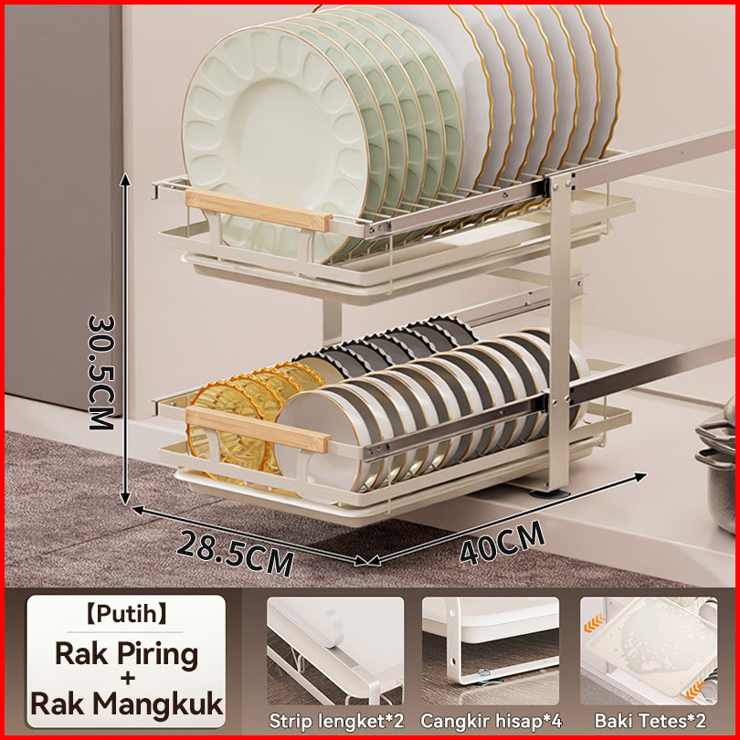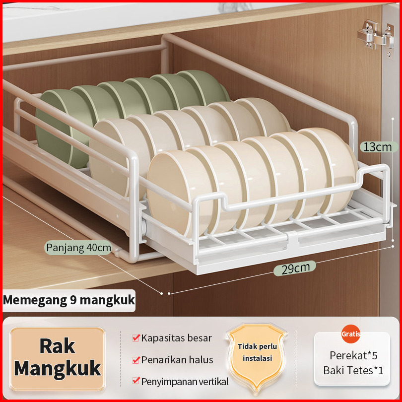 Rak Piring Pengering Piring Lemari Dapur Tarik Keluar Rak Piring Penyelenggara Rak Penyimpanan