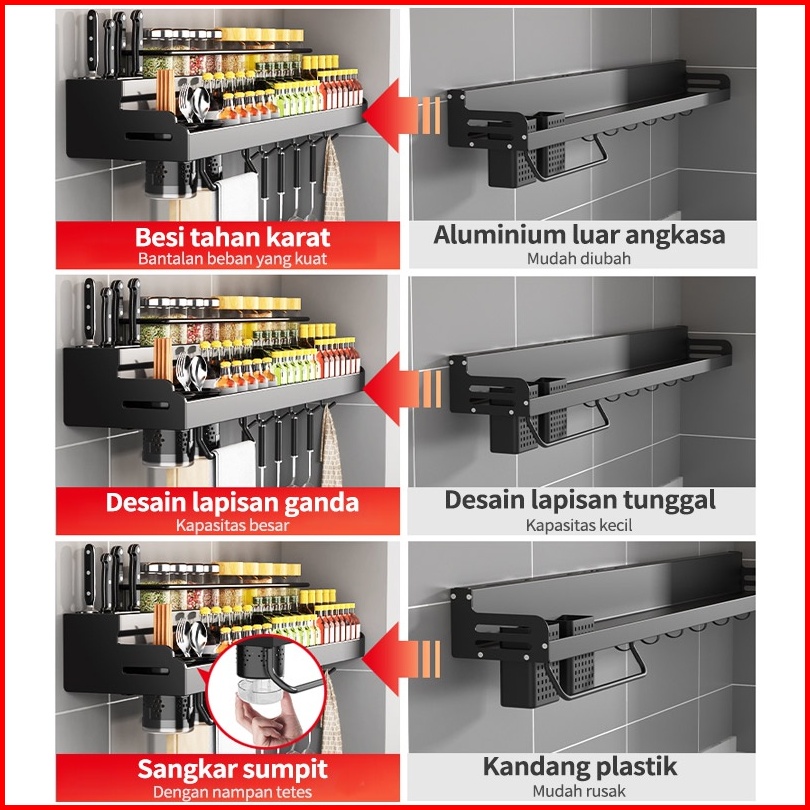 Rak Bumbu Yang Dipasang Dinding Rak Penyimpanan Dapur Rak Pisau Hitam Rak Multifungsi