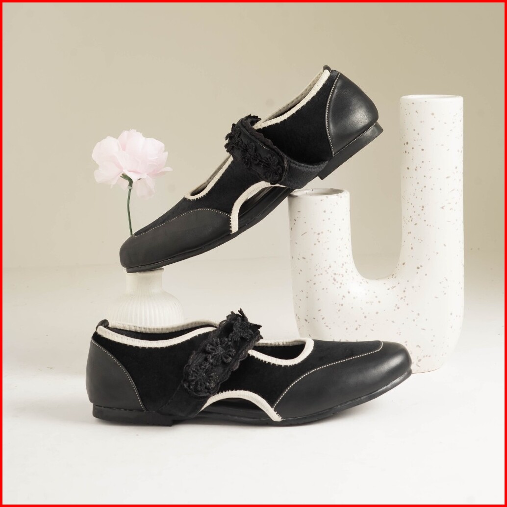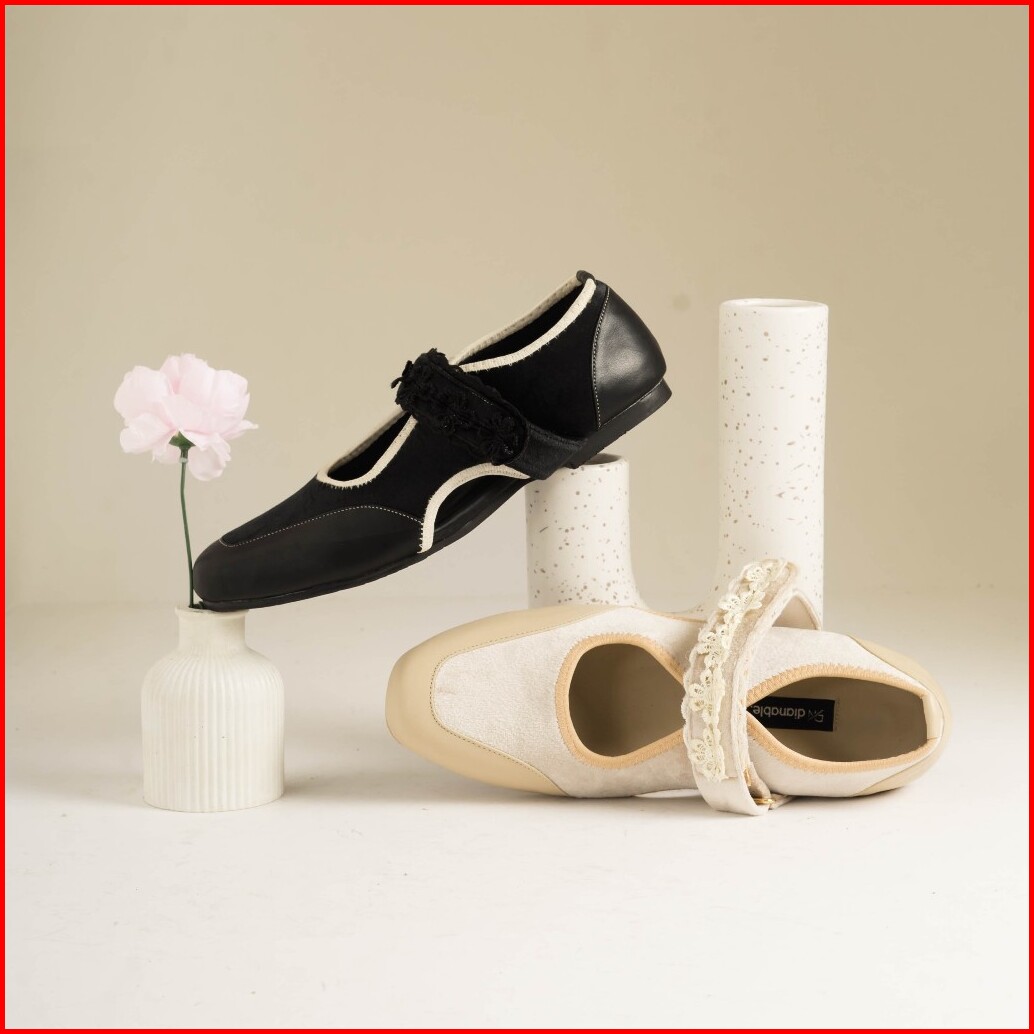 Dianable - Ilona Flatshoes Sepatu Wanita Black - Cream