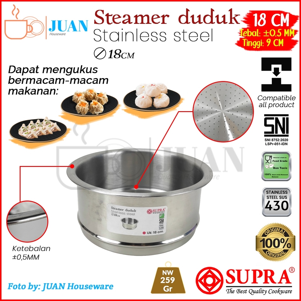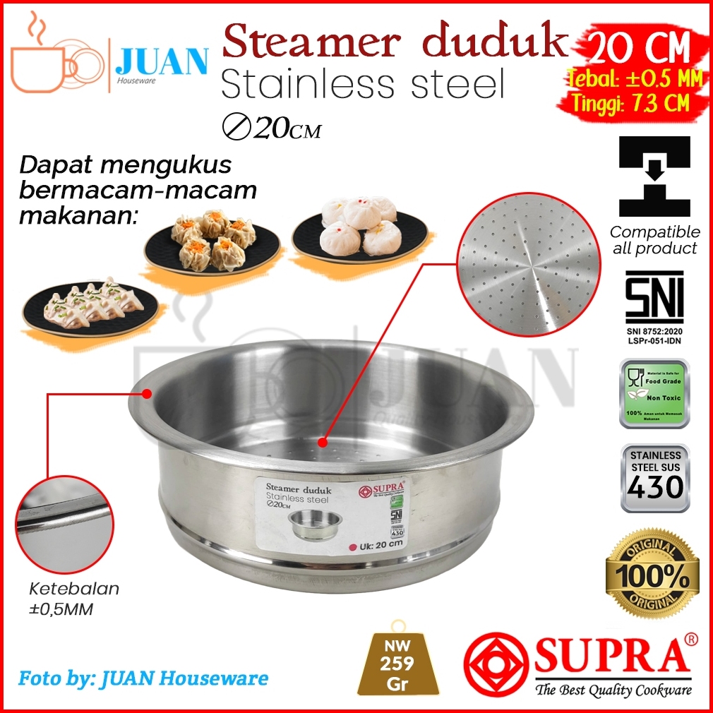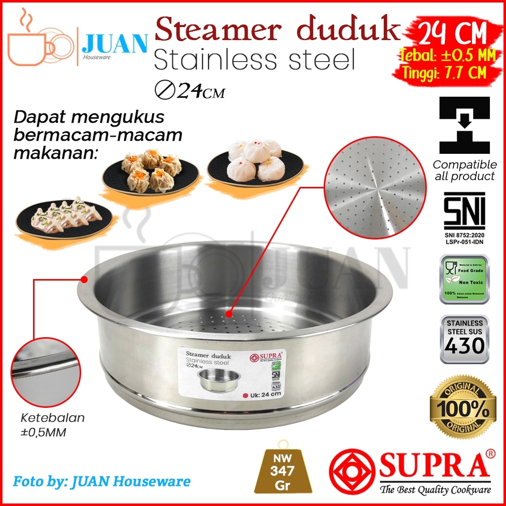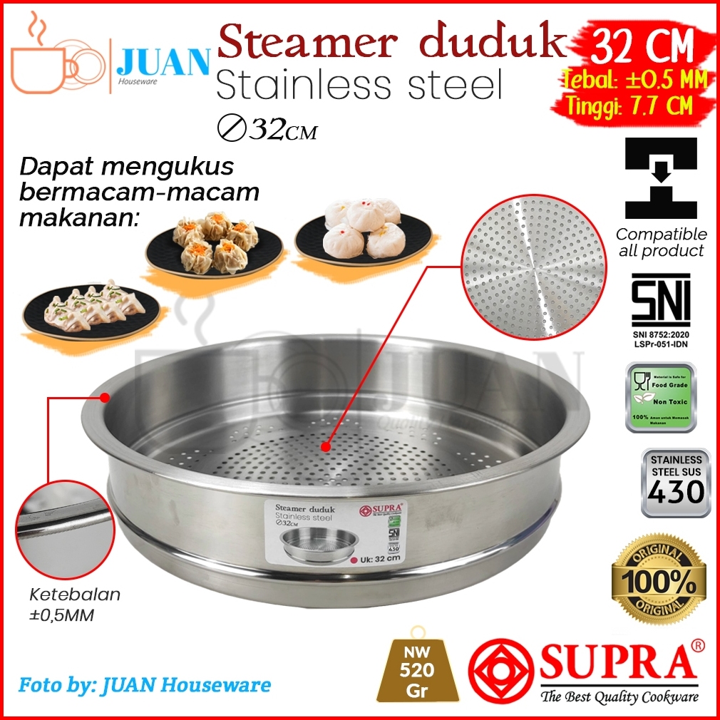 Supra Steamer Duduk Stainless Steel Multifungsi Saringan Kukusan Sauce Pot 18cm 20cm 24cm 28cm 32cm