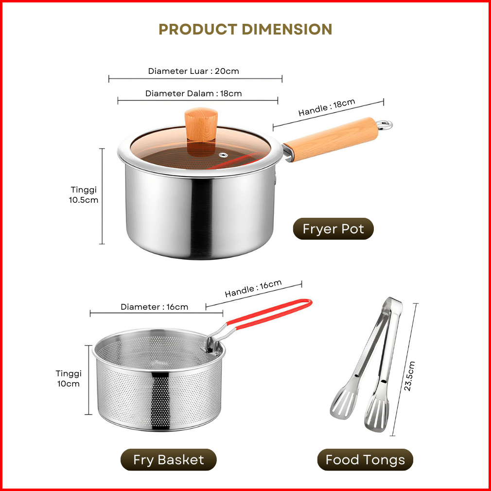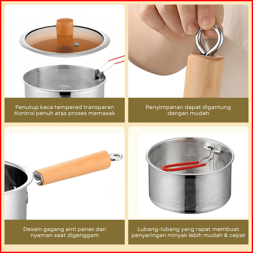 Umikee Deep Fryer Gagang Kayu Deep Fryer 4in1 Besar Ukuran 18cm Deep Fryer Stainless Steel Serbaguna