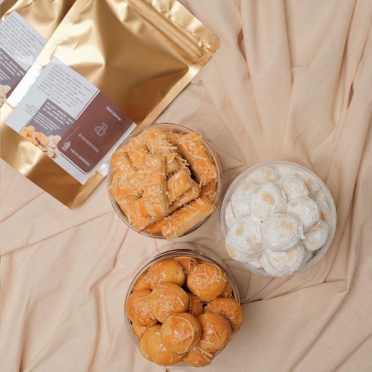 Paket Kue Hampers 3 Toples 2 Pouch Kue Kastengel Salju Susu Nastar Keju Pouch Semprit Sagu