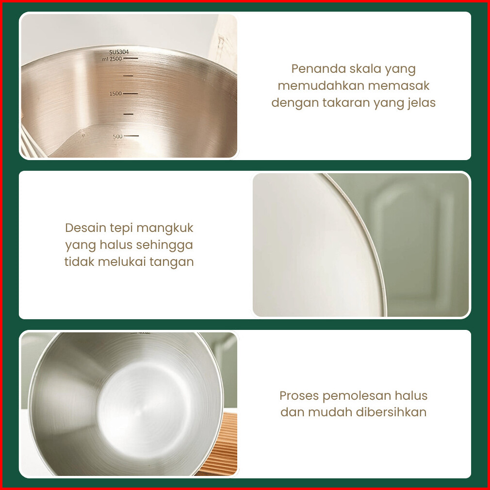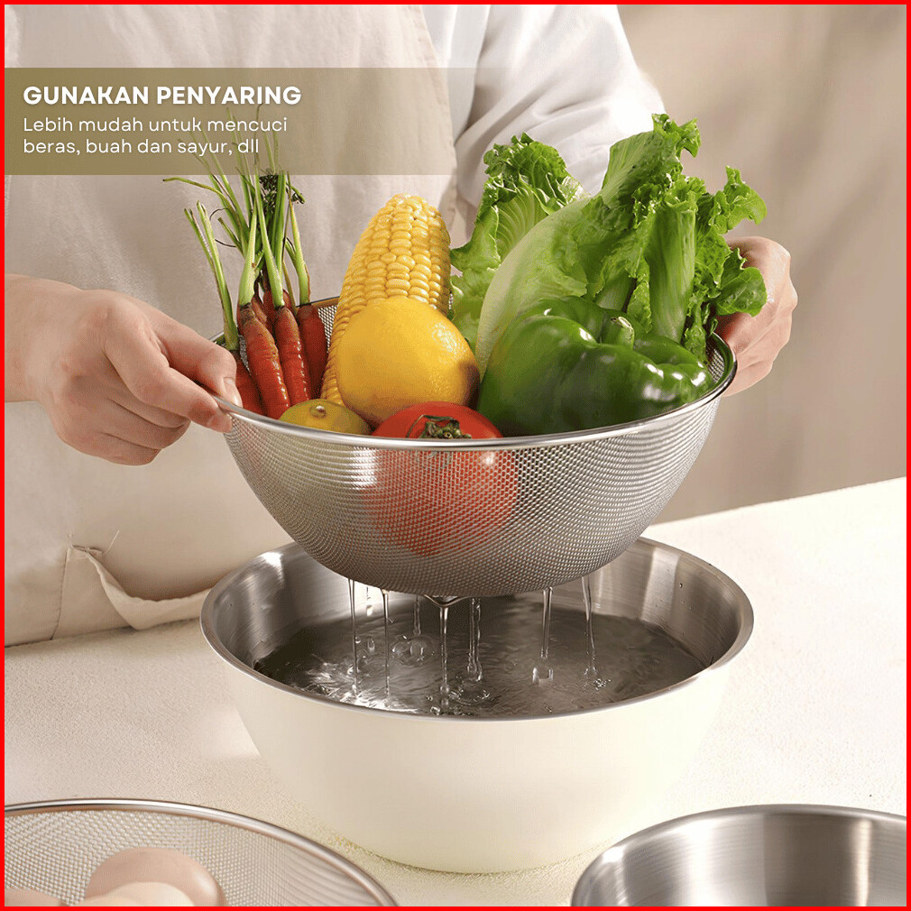 Funkoo Mixing Bowl Multifungsi Stainless 316 Baskom Sayuran Mangkok Sayur Bowl Sayur Serbaguna