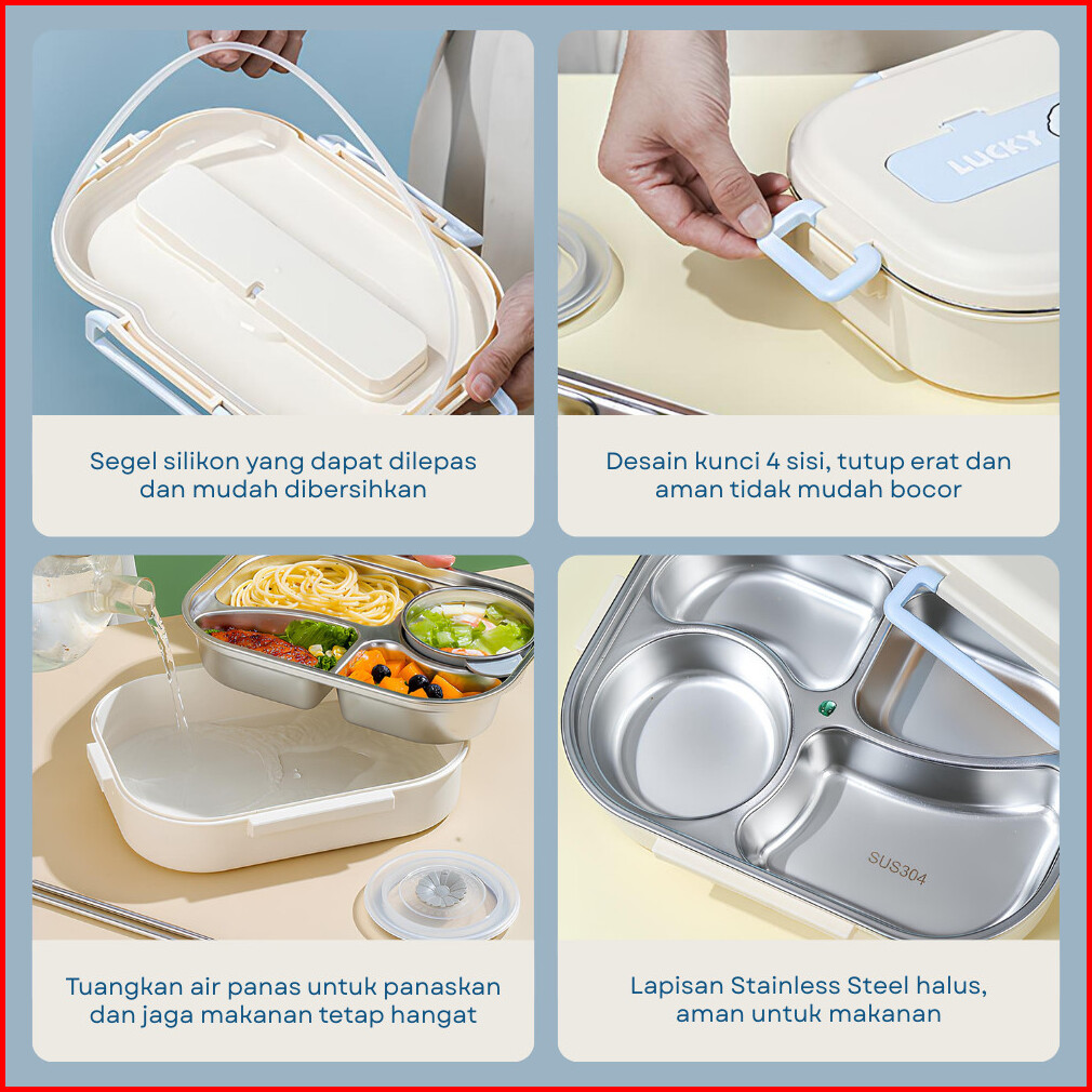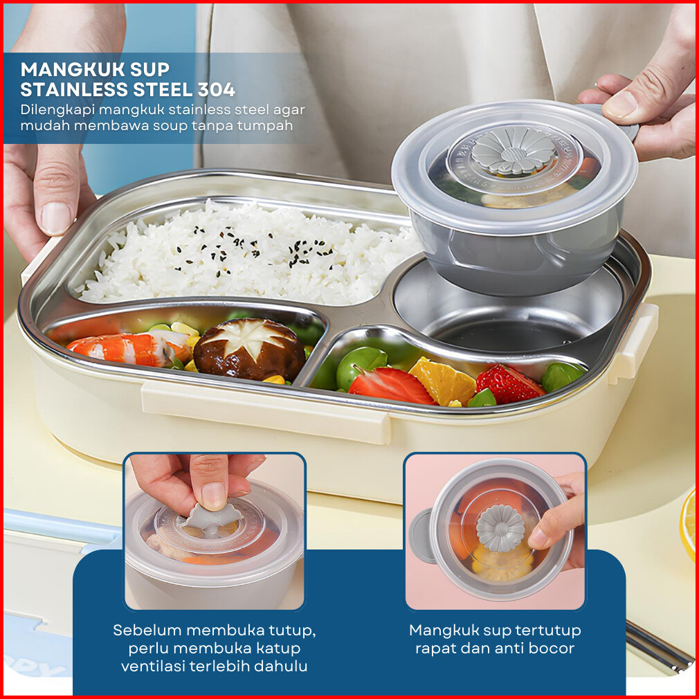 Funkoo Kotak Makan Stainless 304 Lunch Box Tahan Panas Anti Tumpah Tempat Makan 4 Sekat 5 Sekat