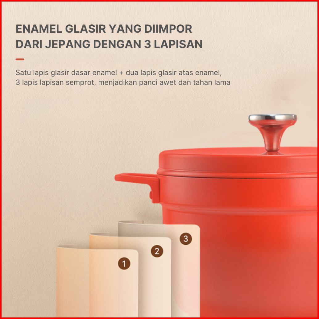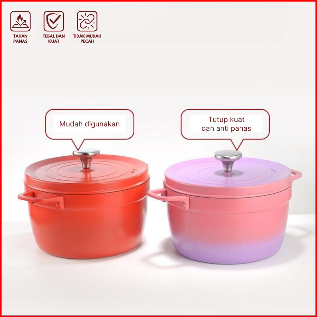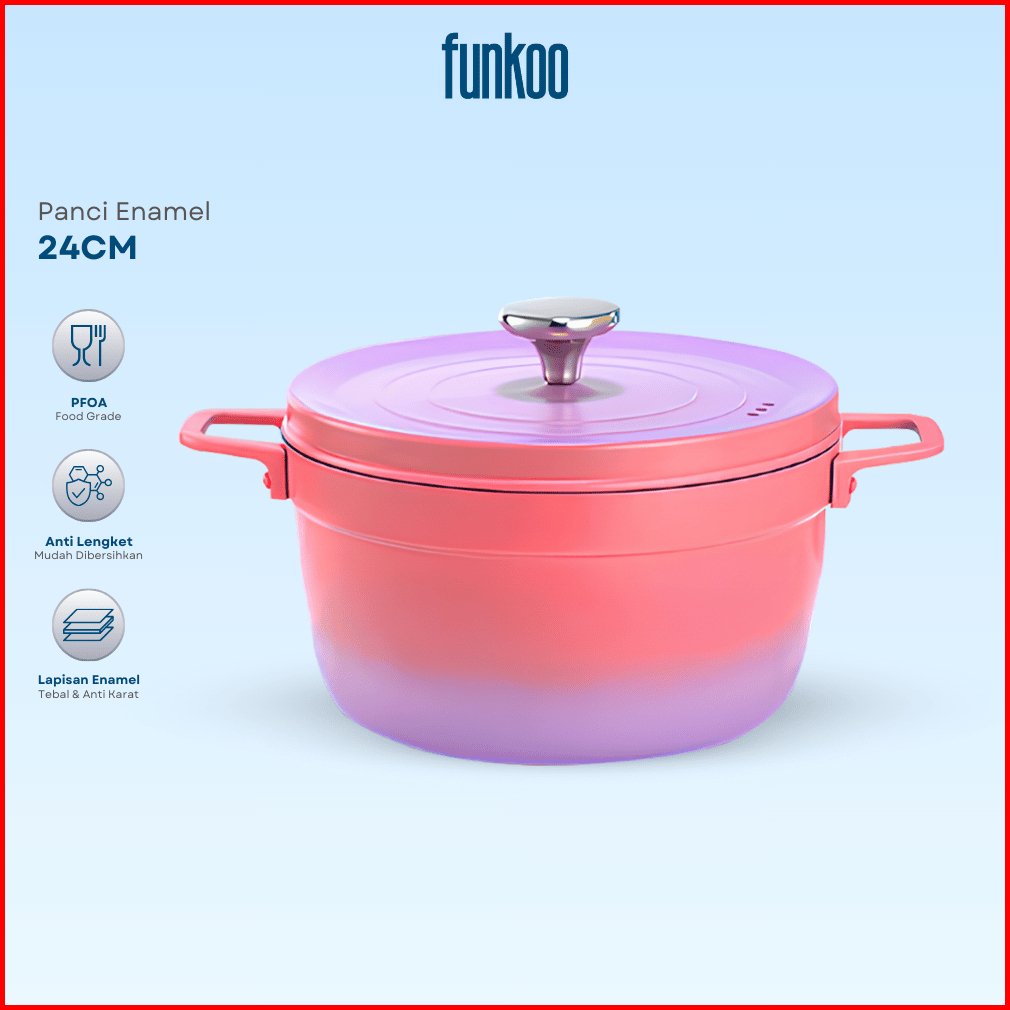 Funkoo Enamel Cast Iron Ukuran 24cm Panci Enamel Besi Cor Panas Merata Anti Lengket