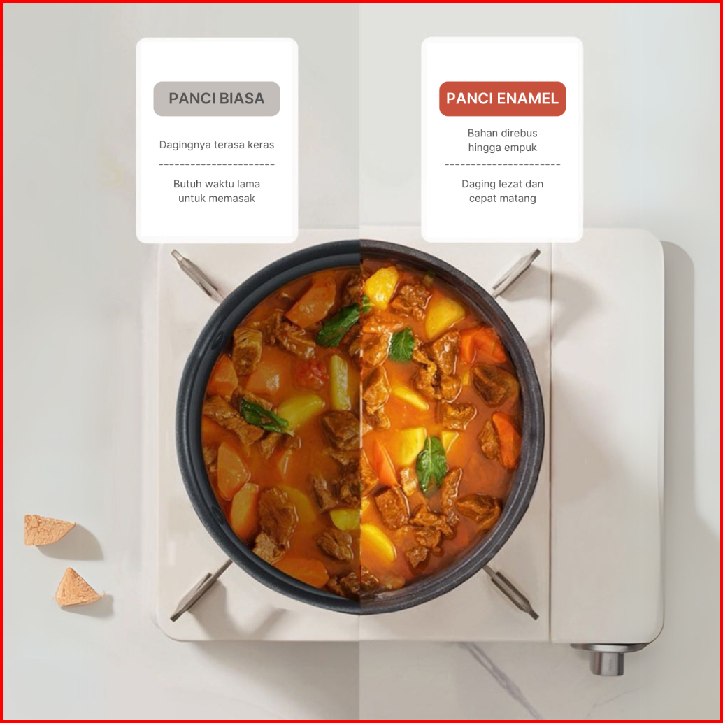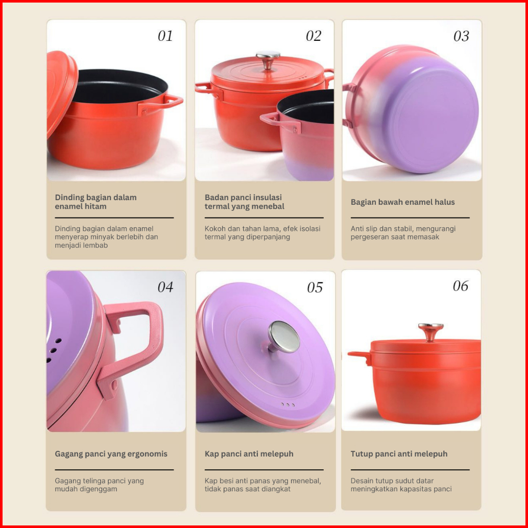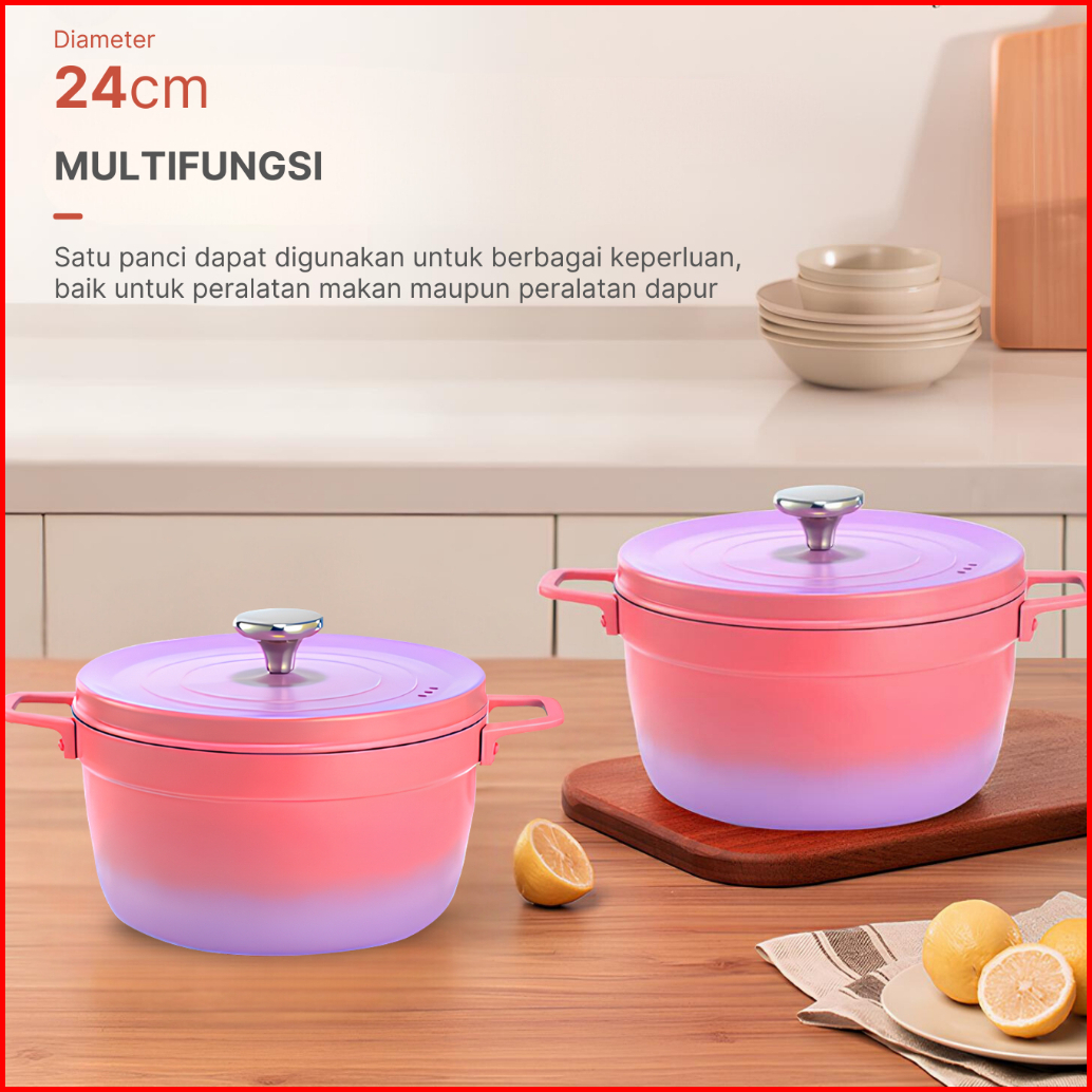 Funkoo Enamel Cast Iron Ukuran 24cm Panci Enamel Besi Cor Panas Merata Anti Lengket