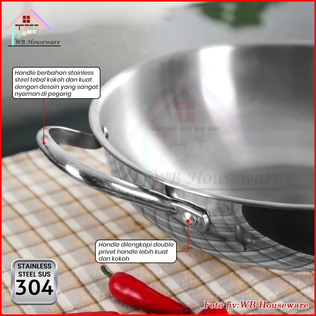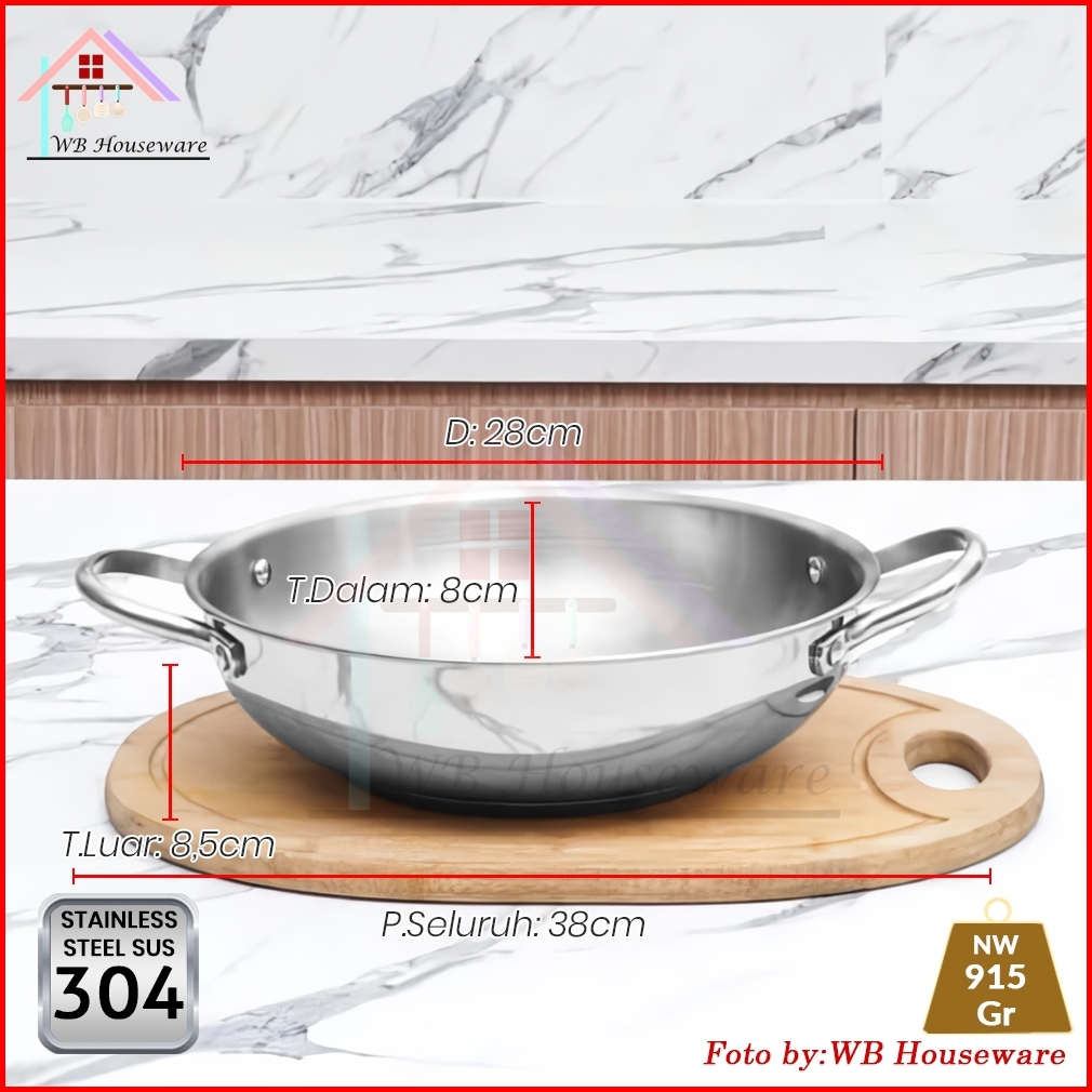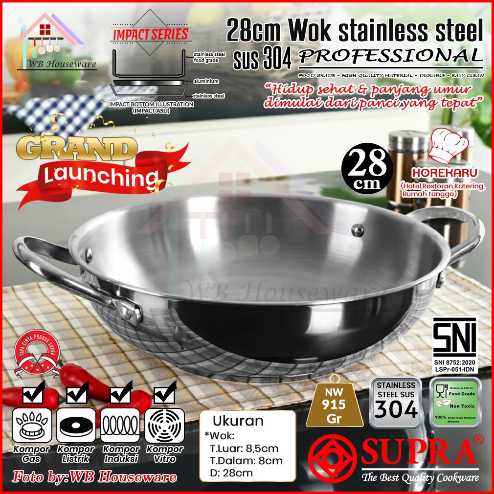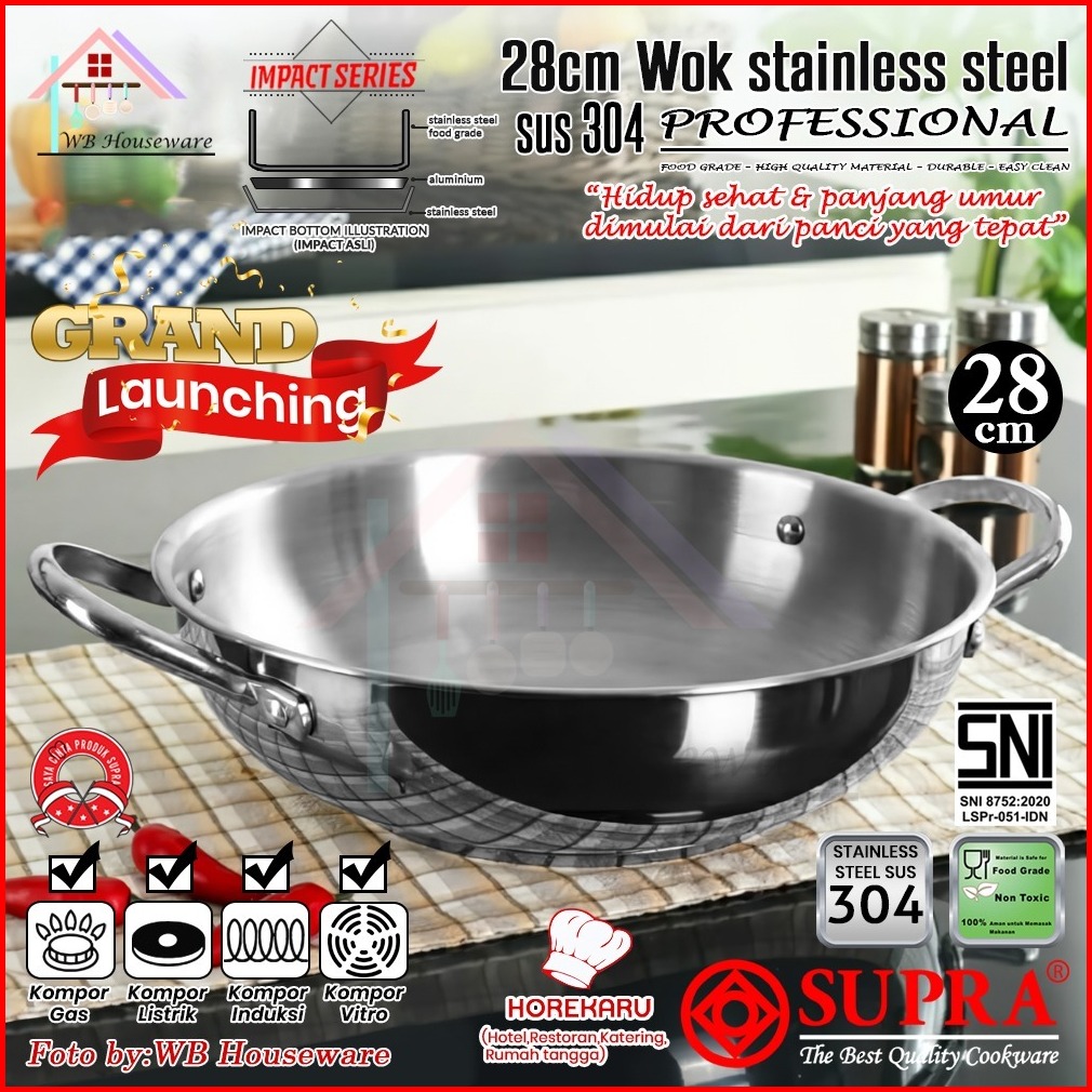 Supra Wok 28cm Stainless Steel Impact Sus 304 Professional Series Panci Wajan Penggorengan Handle Kuping Tebal