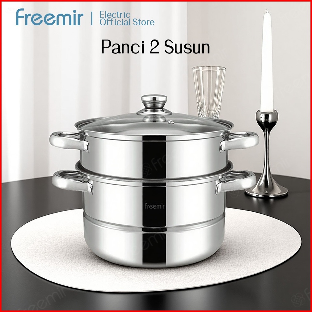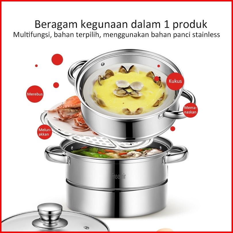 Gratis Piring Freemir Langseng Panci Kukus Panci Rebus Panci Steamer Tingkat 2 Layer Panci Kukusan Stainless Steel Tutup