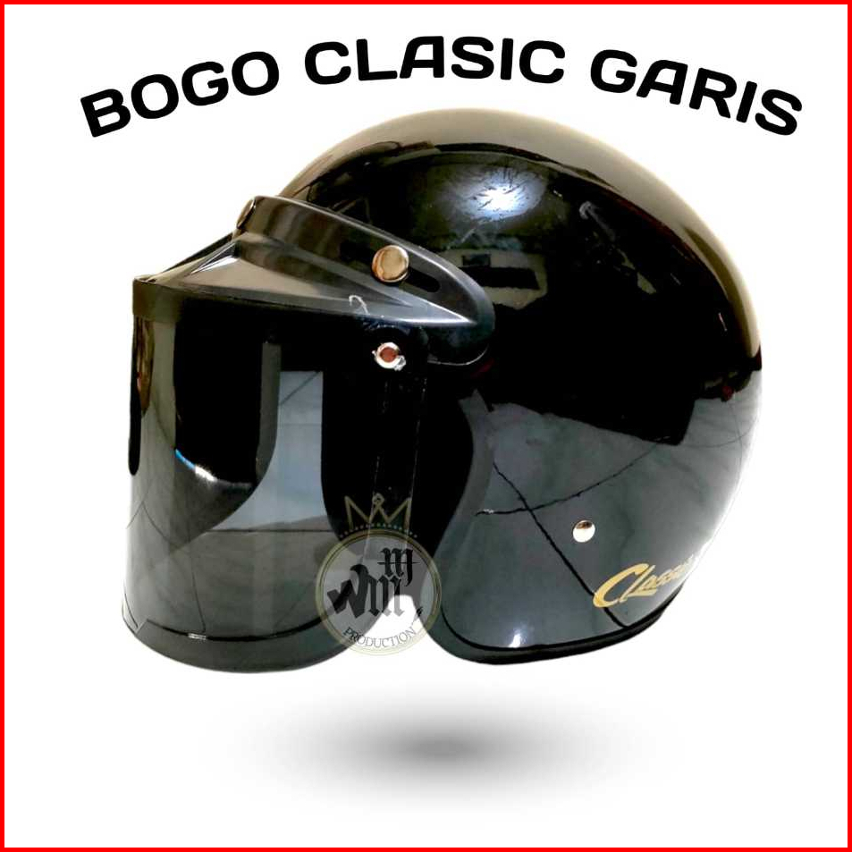 Helm Bogo Dewasa Clasik Tiga Garis Kaca Free Packing Dan Pengaman