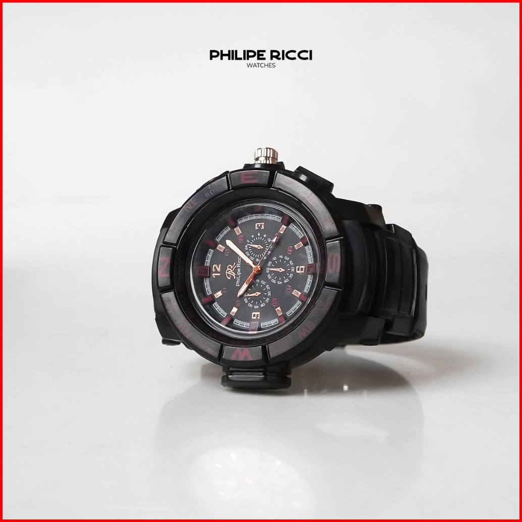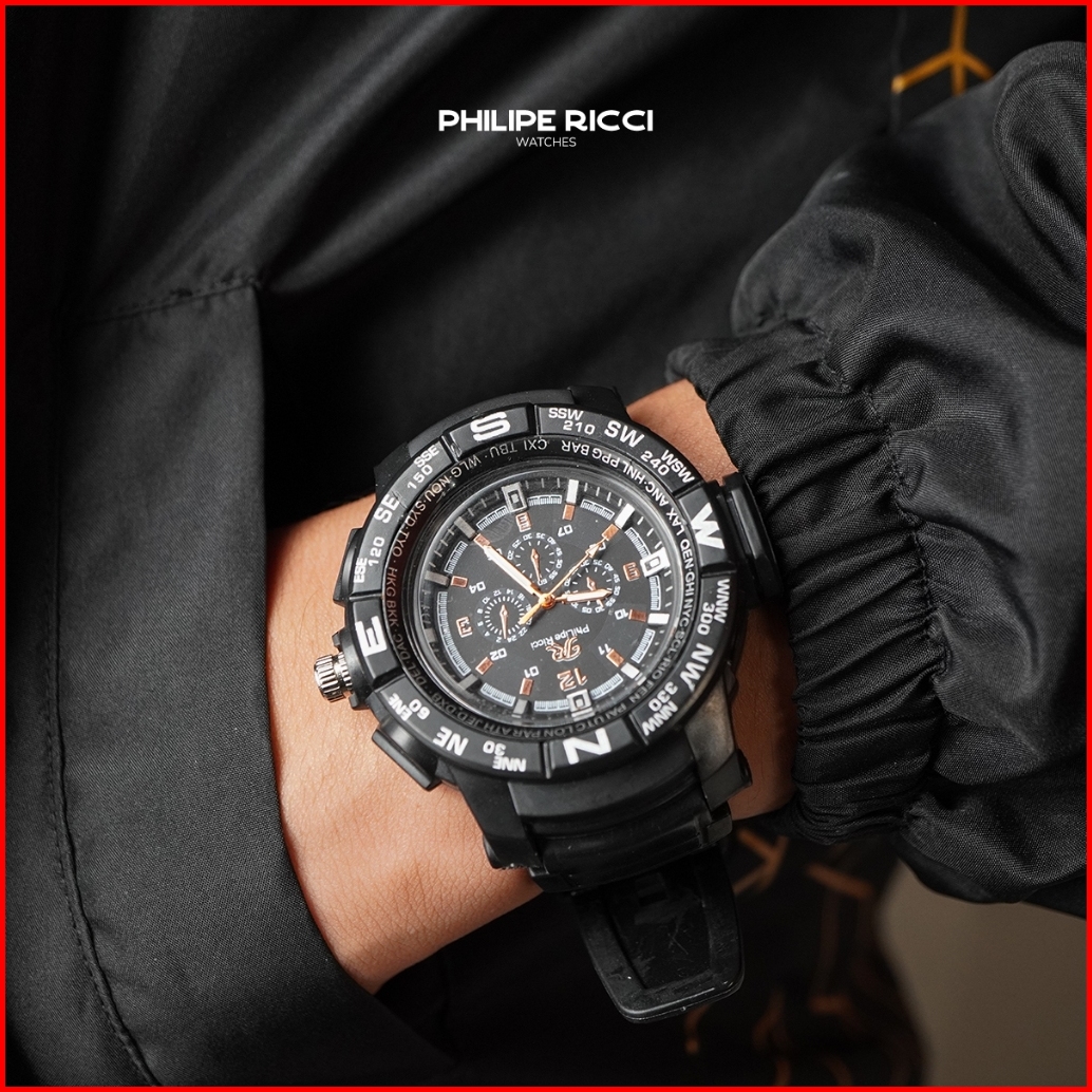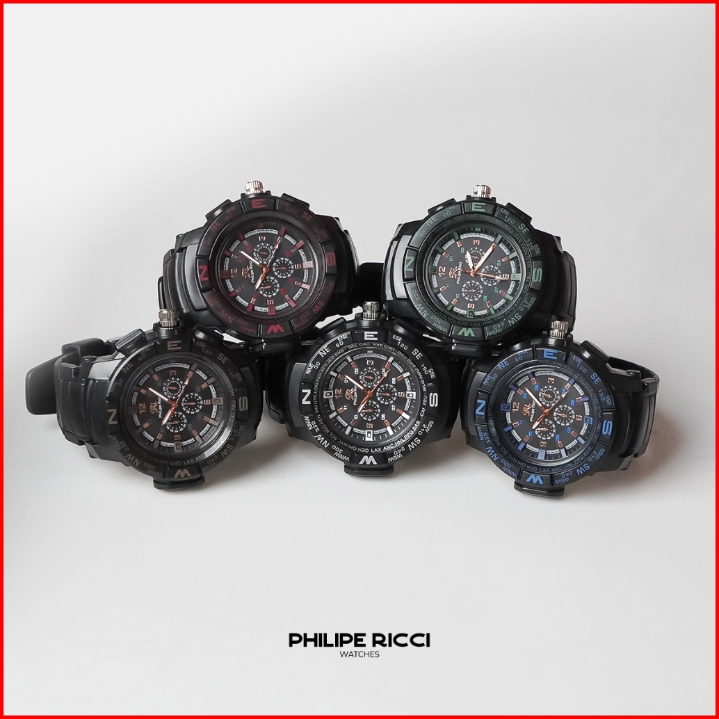 Philipe Ricci Jam Tangan Pria Karet Hitam Sporty Terbaru Original Keren 1801c Men Watches Free Box