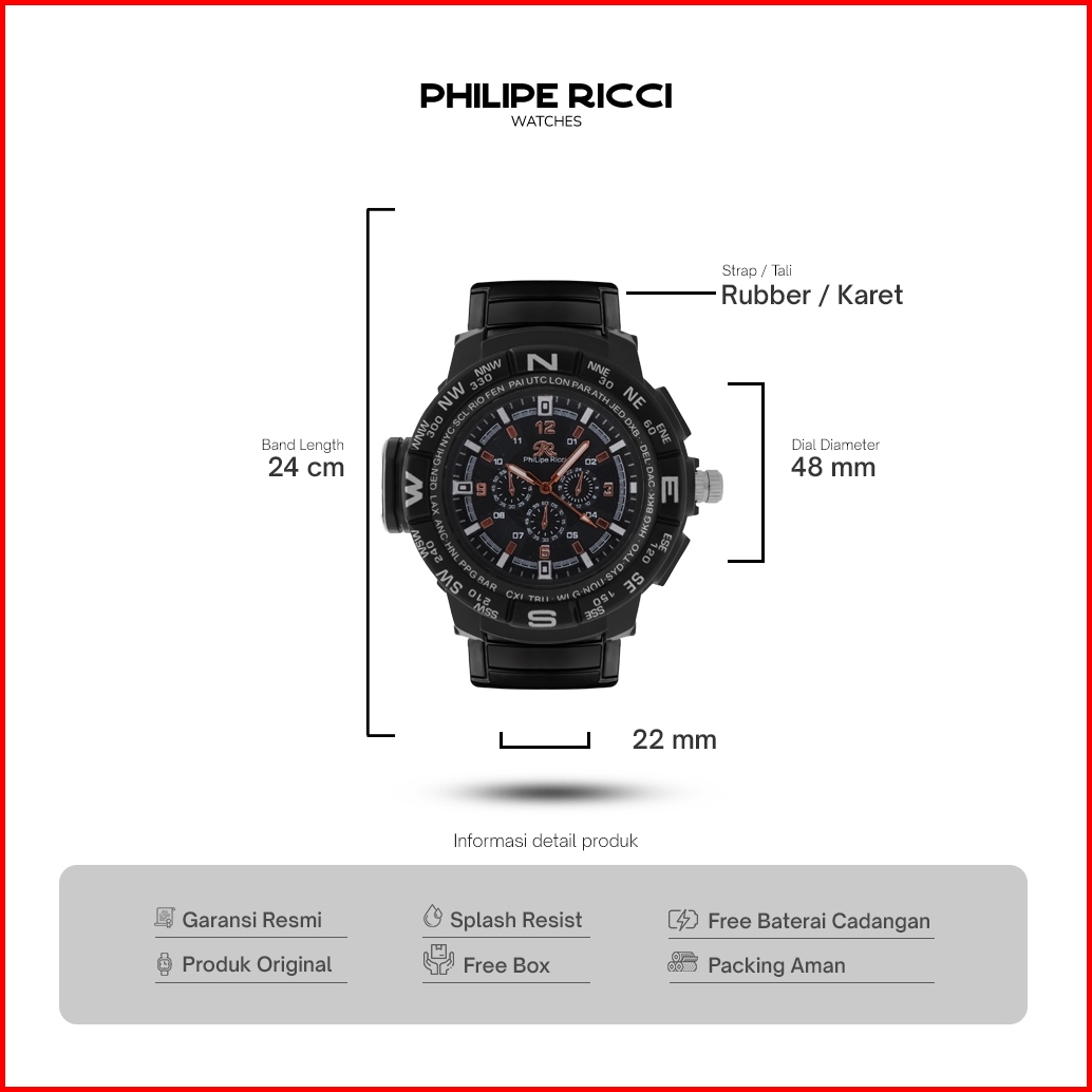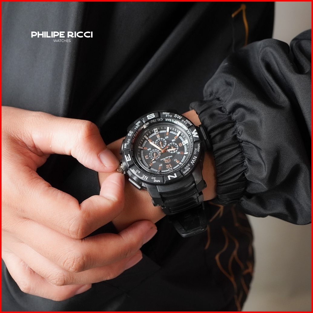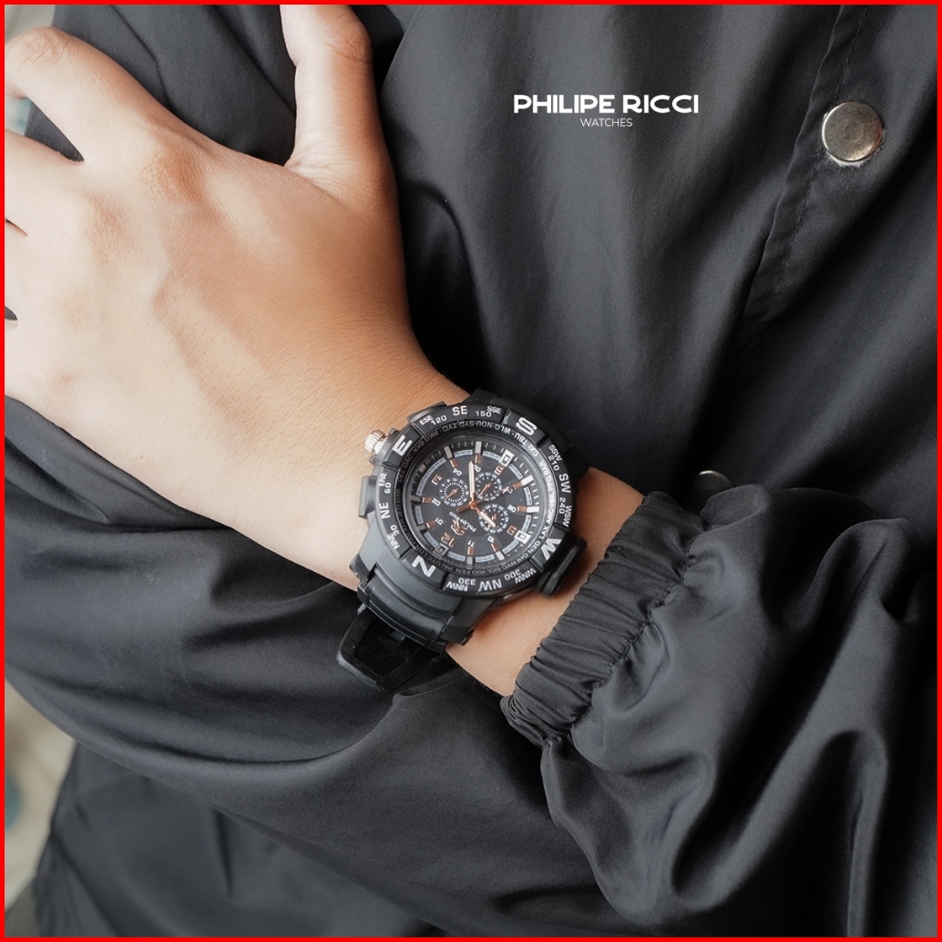 Philipe Ricci Jam Tangan Pria Karet Hitam Sporty Terbaru Original Keren 1801c Men Watches Free Box