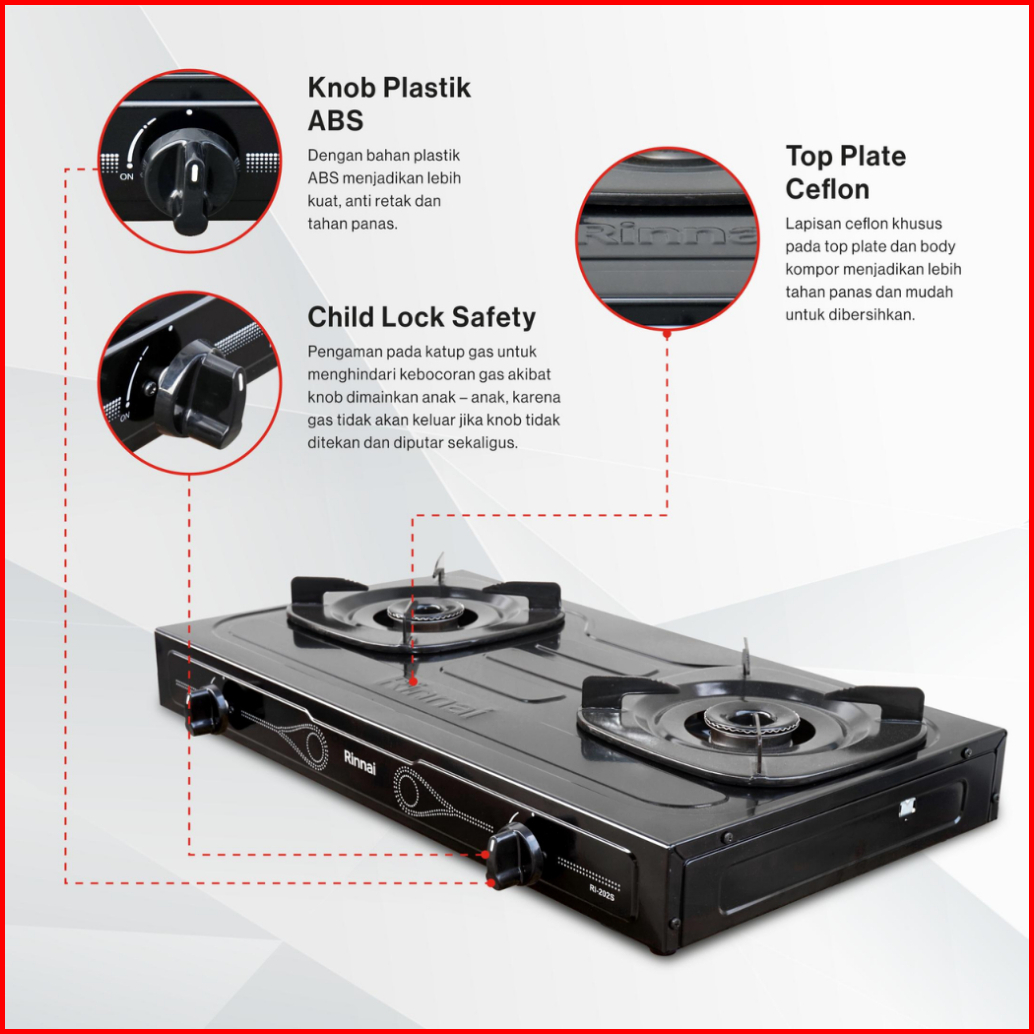 Rinnai Paket Kompor Selang Dan Regulator Ri 202s 2 Tungku Garansi Resmi