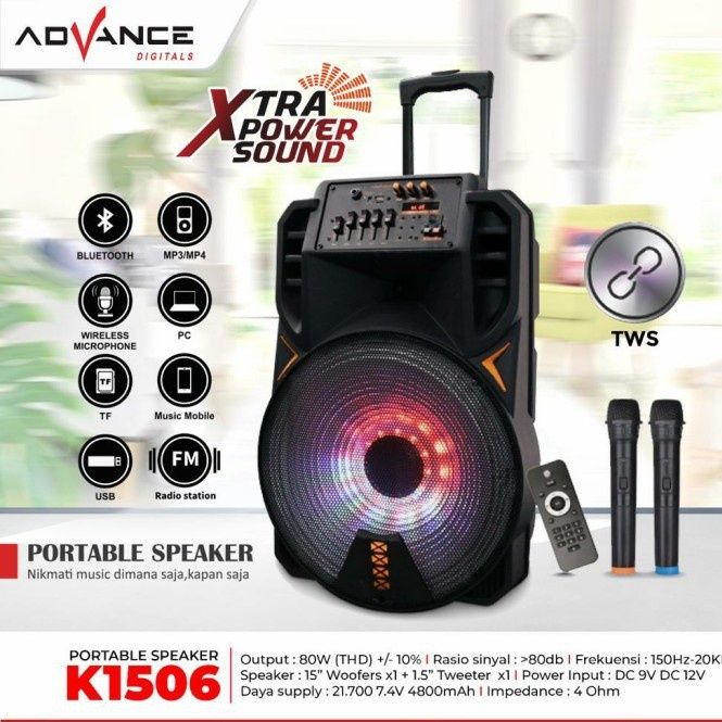 ADVANCE K 1506 - SPEAKER KARAOKE BLUETOOTH PORTABLE DOUBLE 15 inch Free Microphone 2