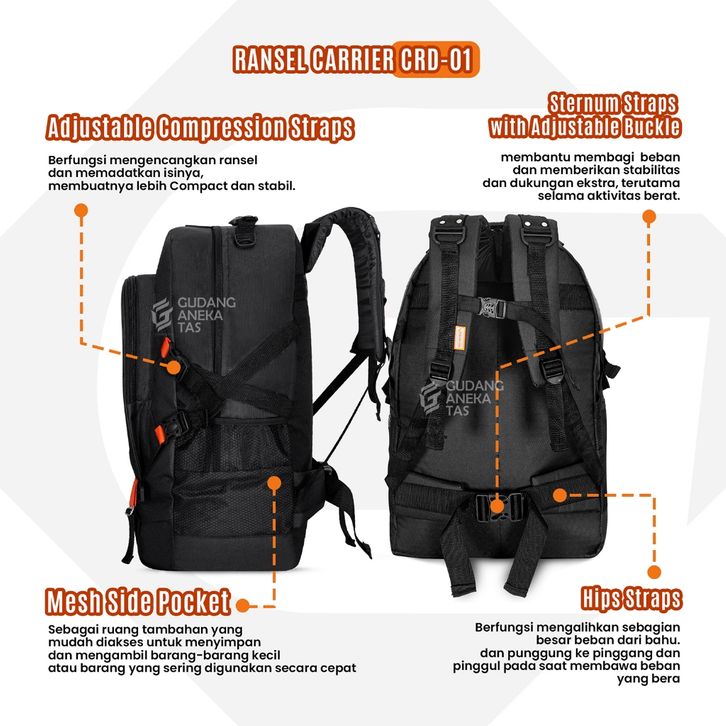GOLDVERS Tas Ransel Pria BackPack Jumbo Ransel Carrier 50L Tas Gunung Ransel Jumbo IMPORT