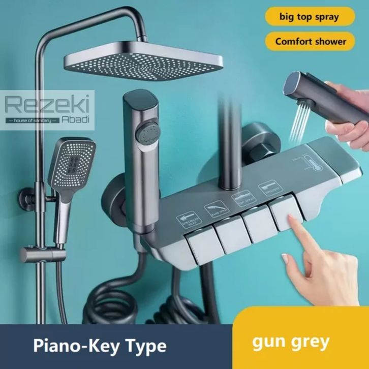 Shower Column Set Pianokey Stainless / Kran Panas Dingin 4 Way / Shower Panas Dingin