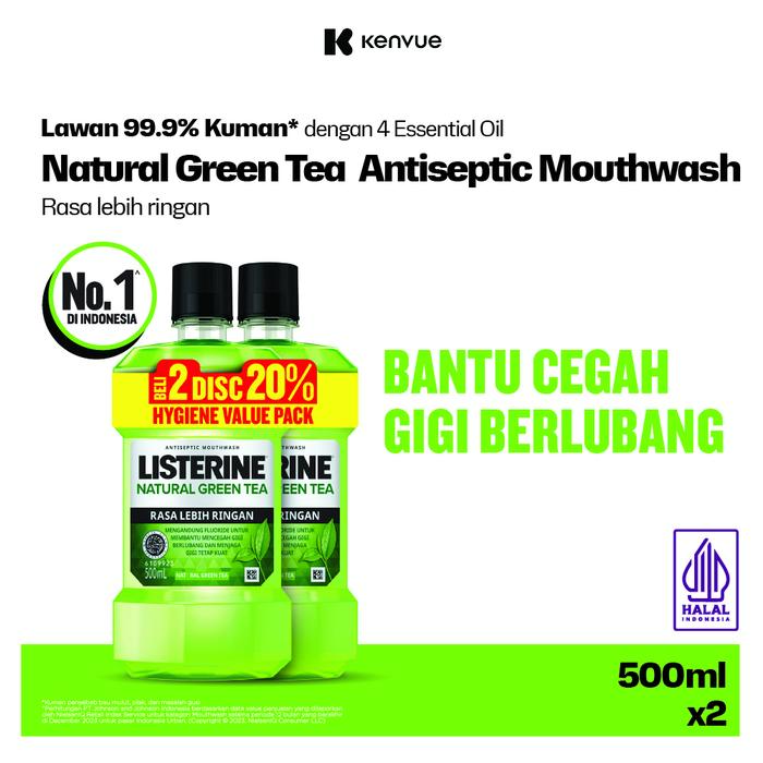 Listerine Green Tea Mouthwash 500Ml (Isi 2) - Obat Kumur Antiseptik
