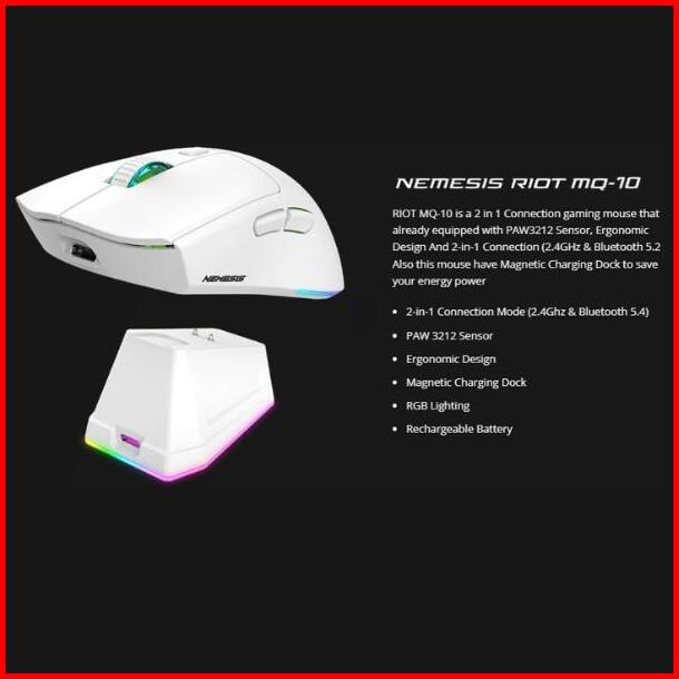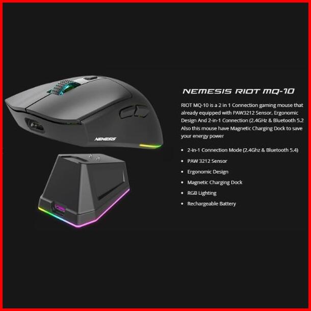 Nyk Nemesis Riot Mq10 Mq-10 Mouse Wireless Dual Mode Rechargeable Battery With Docking Charging