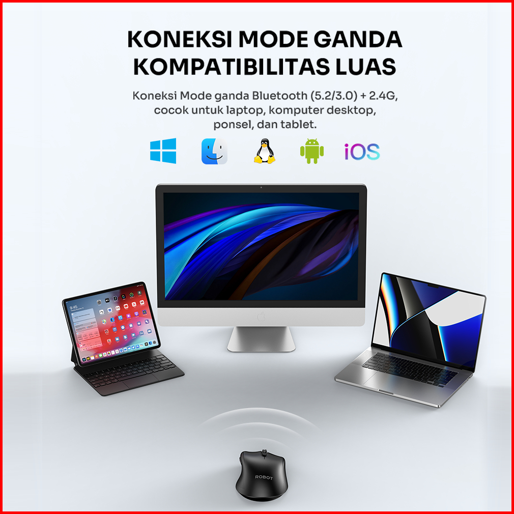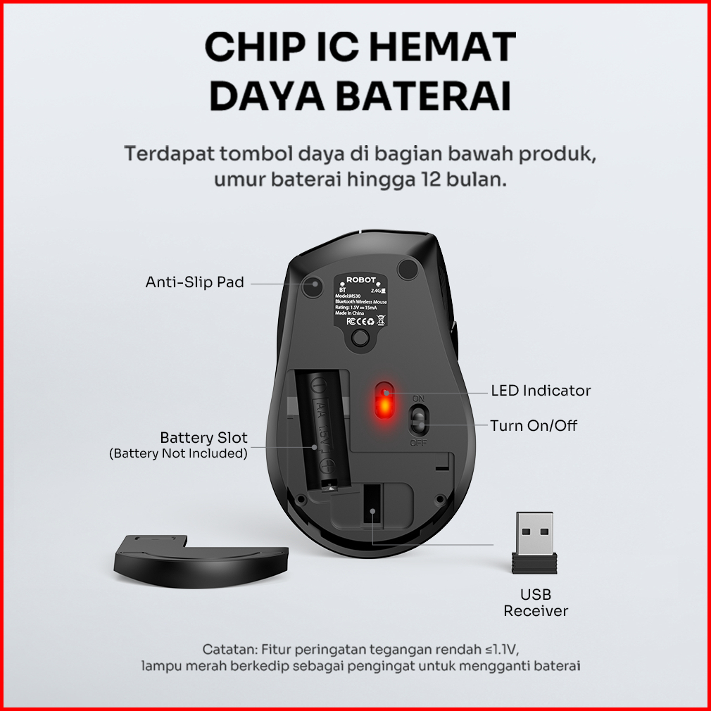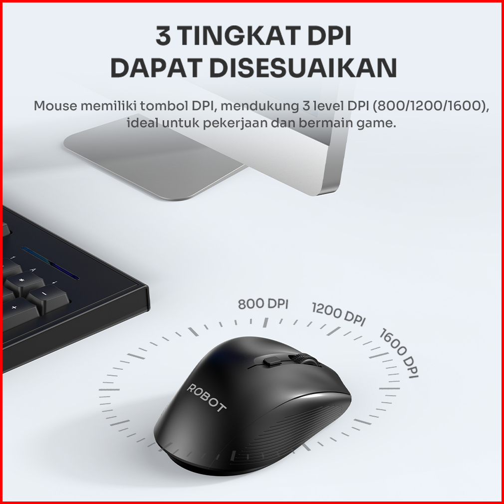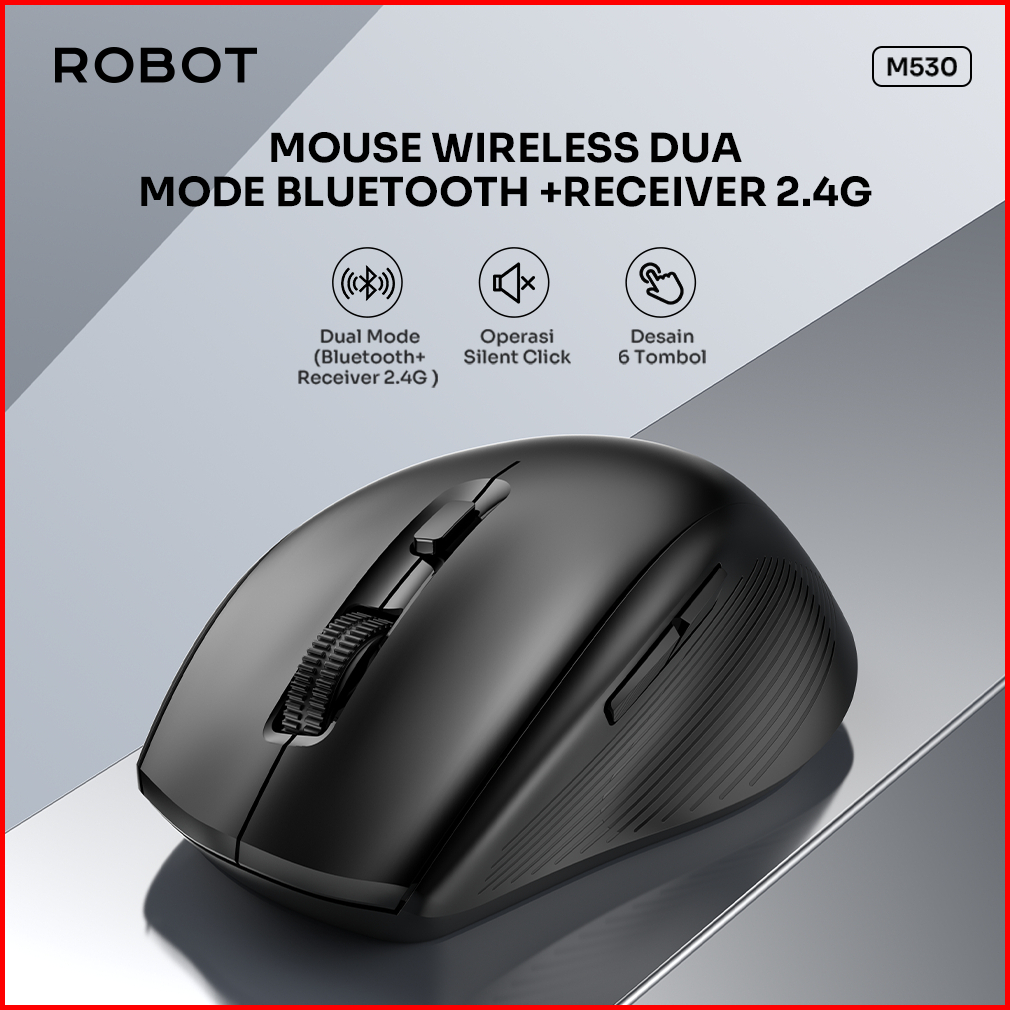 Mouse Wireless Bluetooth Robot M530 - Dual Mode Usb Receiver - Silent Click 1600dpi - Original Untuk Laptop Pc - Garansi