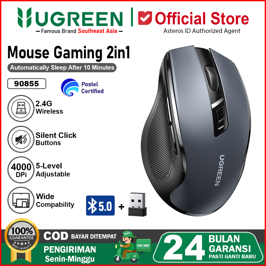 Ugreen Mouse Gaming Wireless 2.4g Dongle Bluetooth Silent Click 5 Level 4000 Dpi