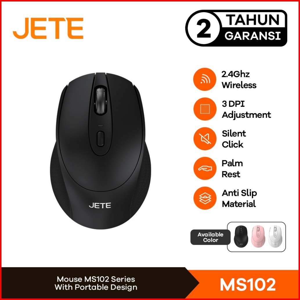 Mouse Silent Wireless Jete Ms102 With 3 Level Dpi Ergonomis Design - Garansi 2 Tahun