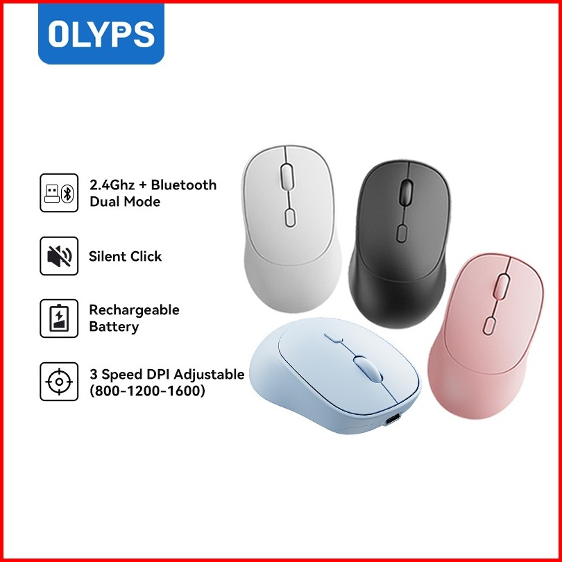 Olyps Mouse Wireless Bluetooth Silent Click Mini Rechargeable Laptop Tanpa Kabel Optical 1600dpi