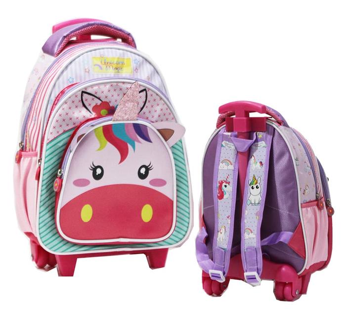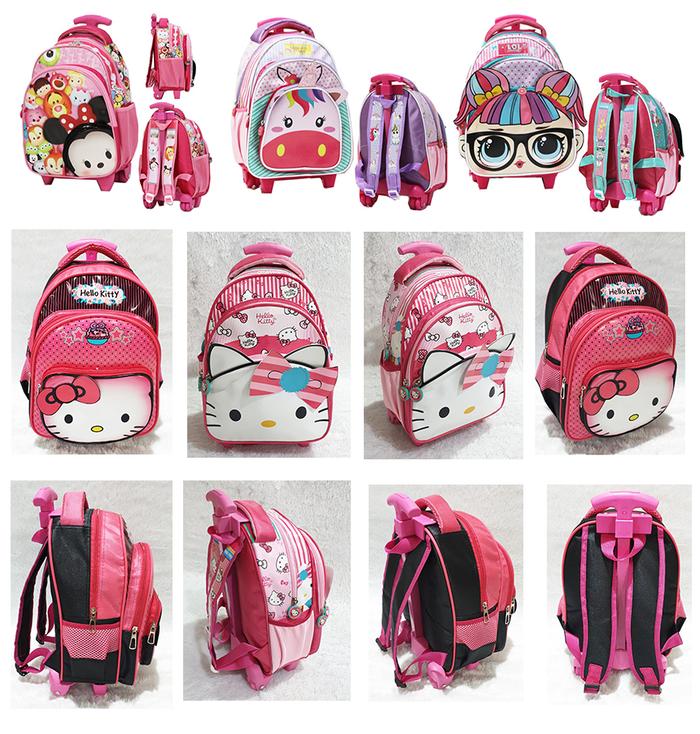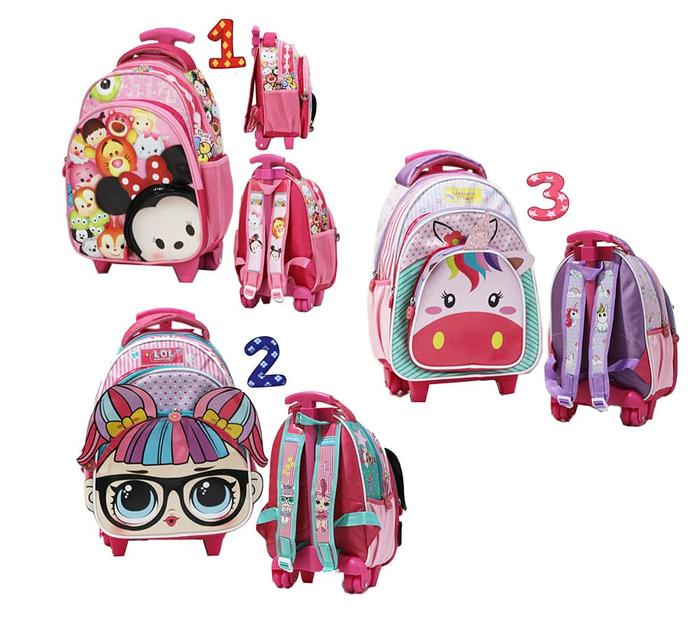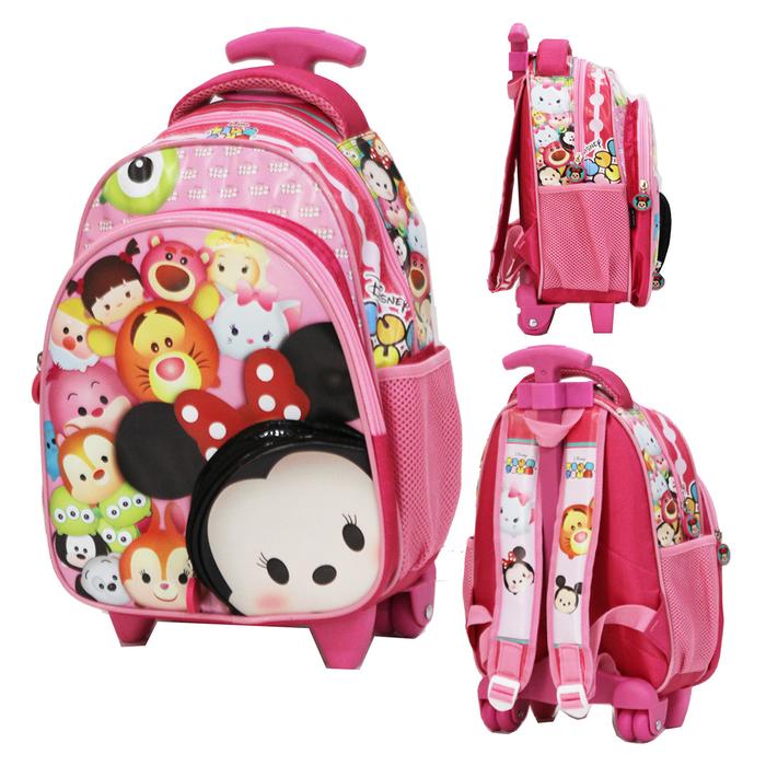 Tas Anak Sekolah Tk & Pg Trolley Dorong Anak Perempuan Bahan Kain Sponge Tahan Air - Tsum Tsum