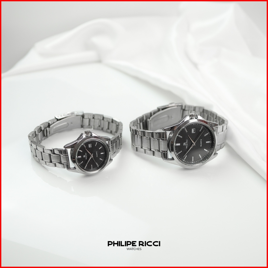 Philipe Ricci Jam Tangan Couple Rantai Besi Pria Wanita Terbaru Elegan 7501 Free Box