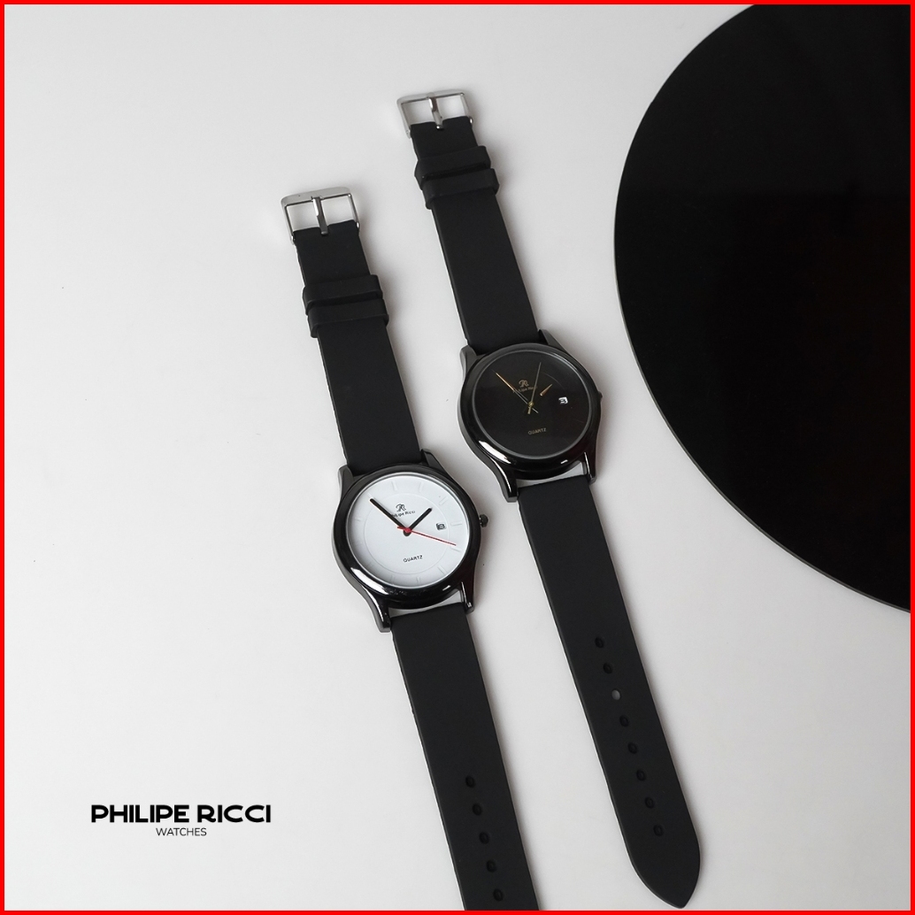 Philipe Ricci Jam Tangan Pria Karet Hitam Simple Keren Terbaru Original 100 7619 Free Baterai