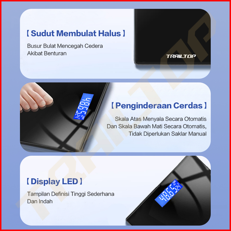 Trailtop Timbangan Badan Digital Scale Kaca Pengukuran Akurat Timbangan Layar Lcd Berat Max 180kg