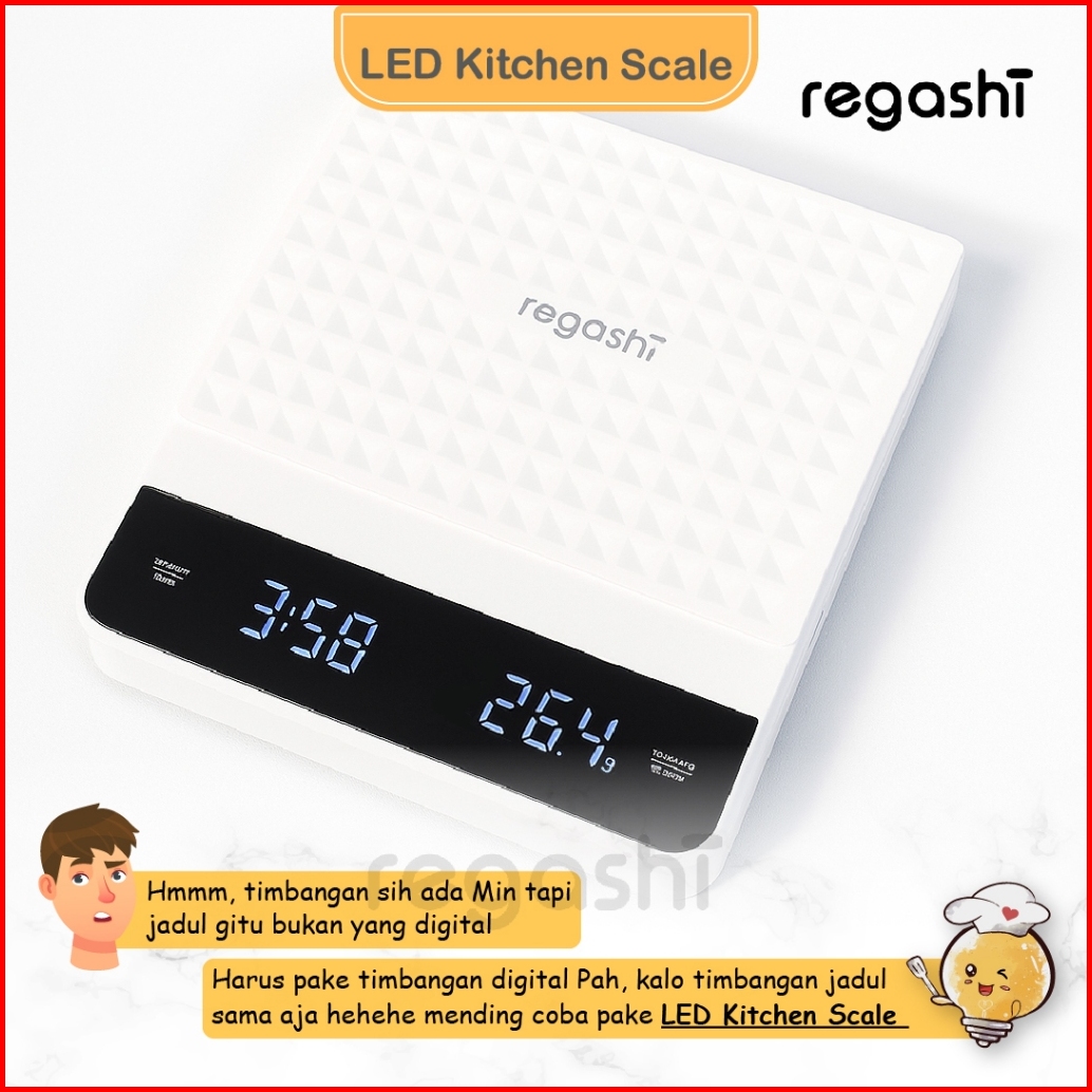 Regashi Led Kitchen Scale Timbangan Dapur 3kg Kitchen Scale Anti Slip Rechargable