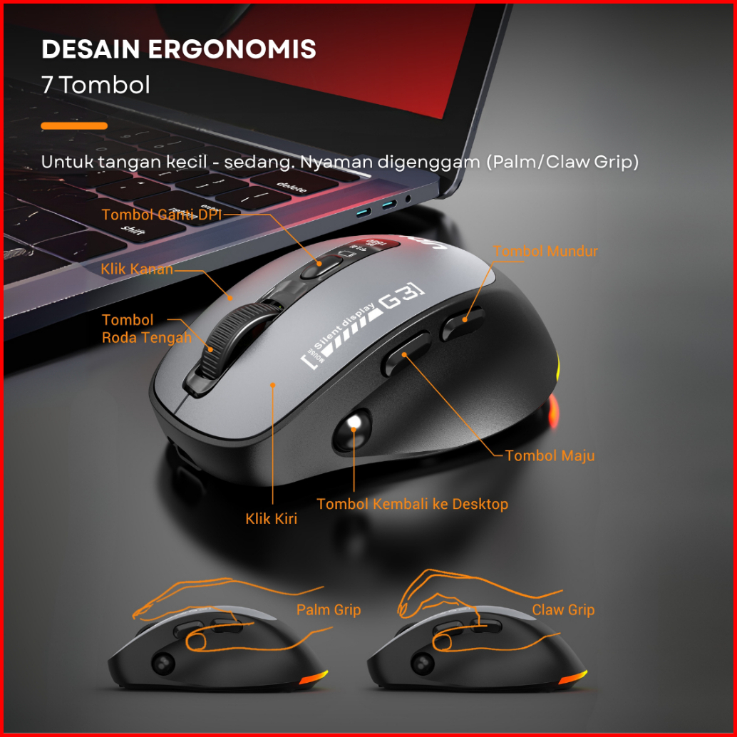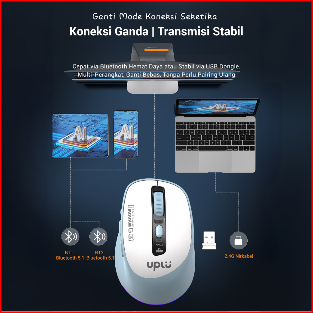 Uplu Mouse Wireless Bluetooth Gaming Silent Click Rechargeable 1600 Dpi Untuk Laptop Tablet Hp