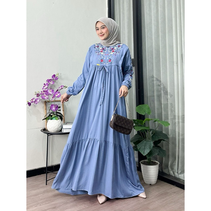 Arni Busana - Amanda Maxi Dress Gamis Bordir Bahan Rayon Twill Signature Tebal Dan Adem New Launching