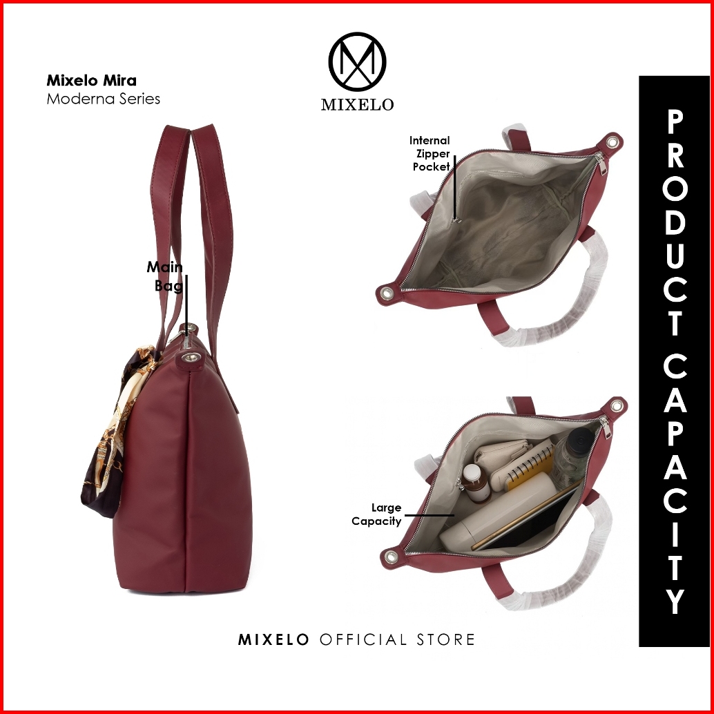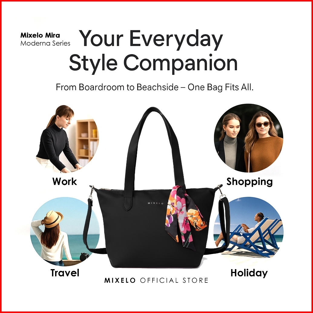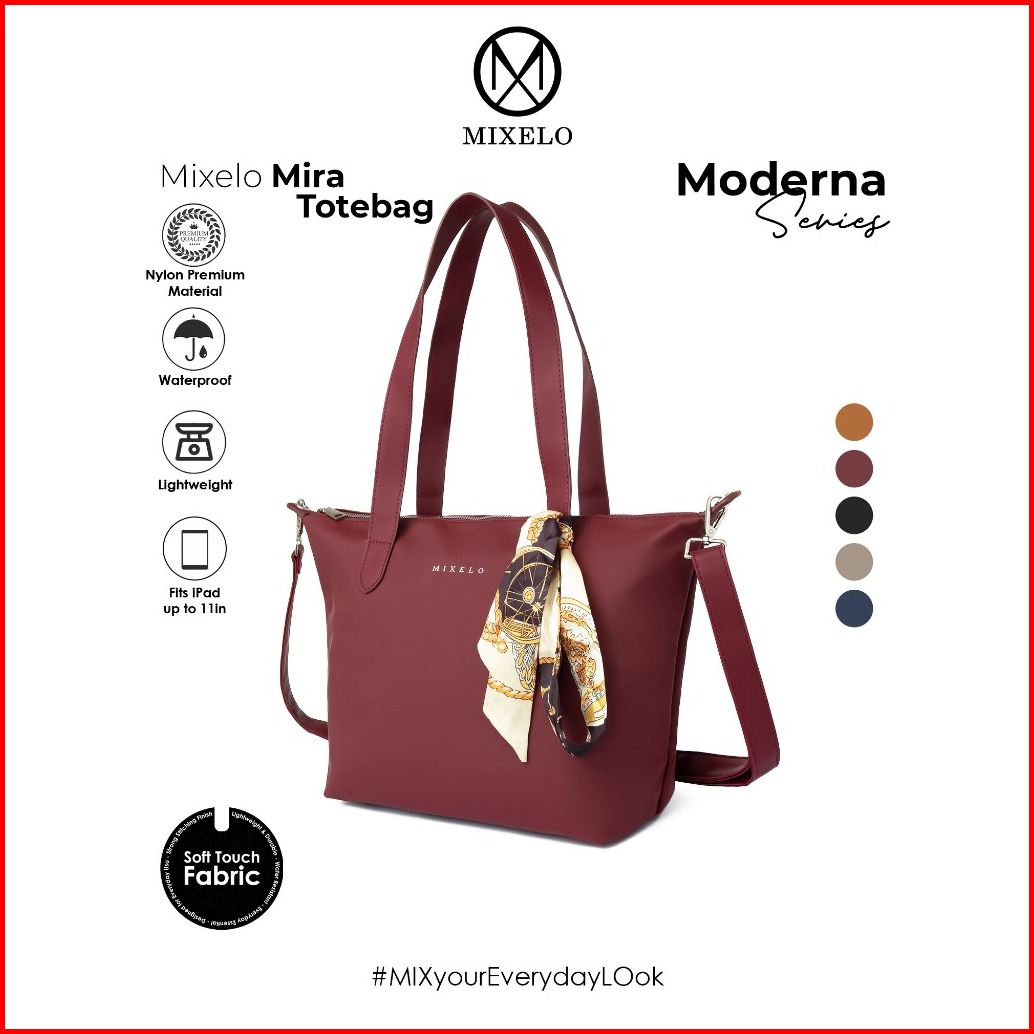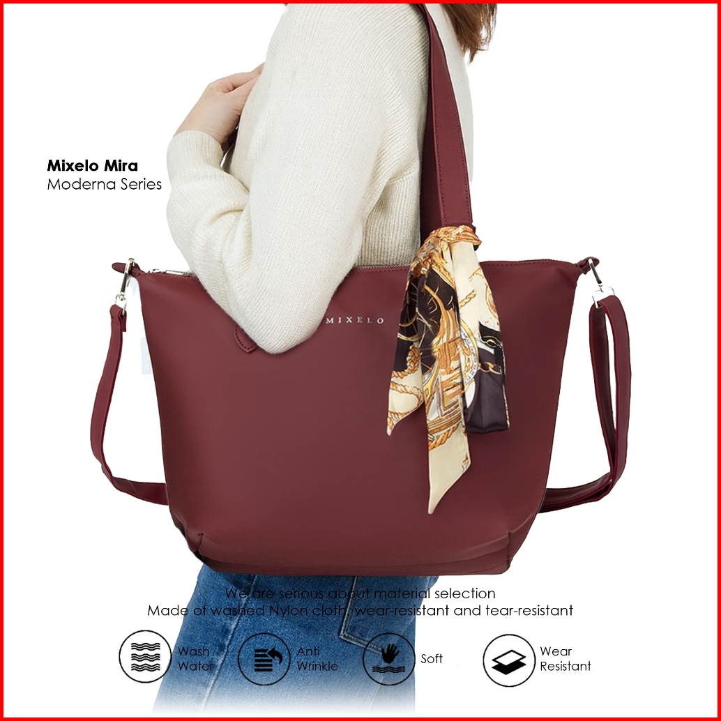 Mixelo Tas Wanita Mira Tote Bag Nylon Waterproof Tas Kuliah Ringan Tas Kerja Elegan