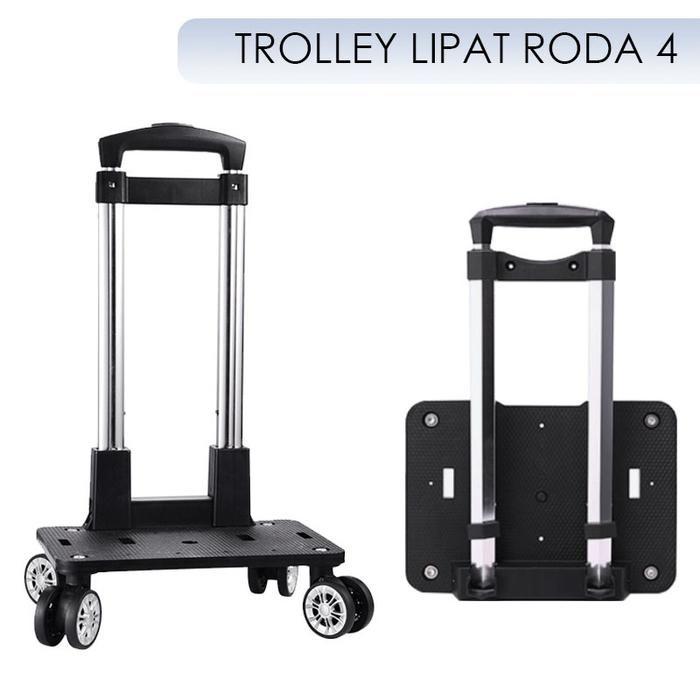 Troli Tas Sekolah Anak Lipat Roda 2 4 6 Premium Foldable Trolley Import Serbaguna - Roda 2 Pink