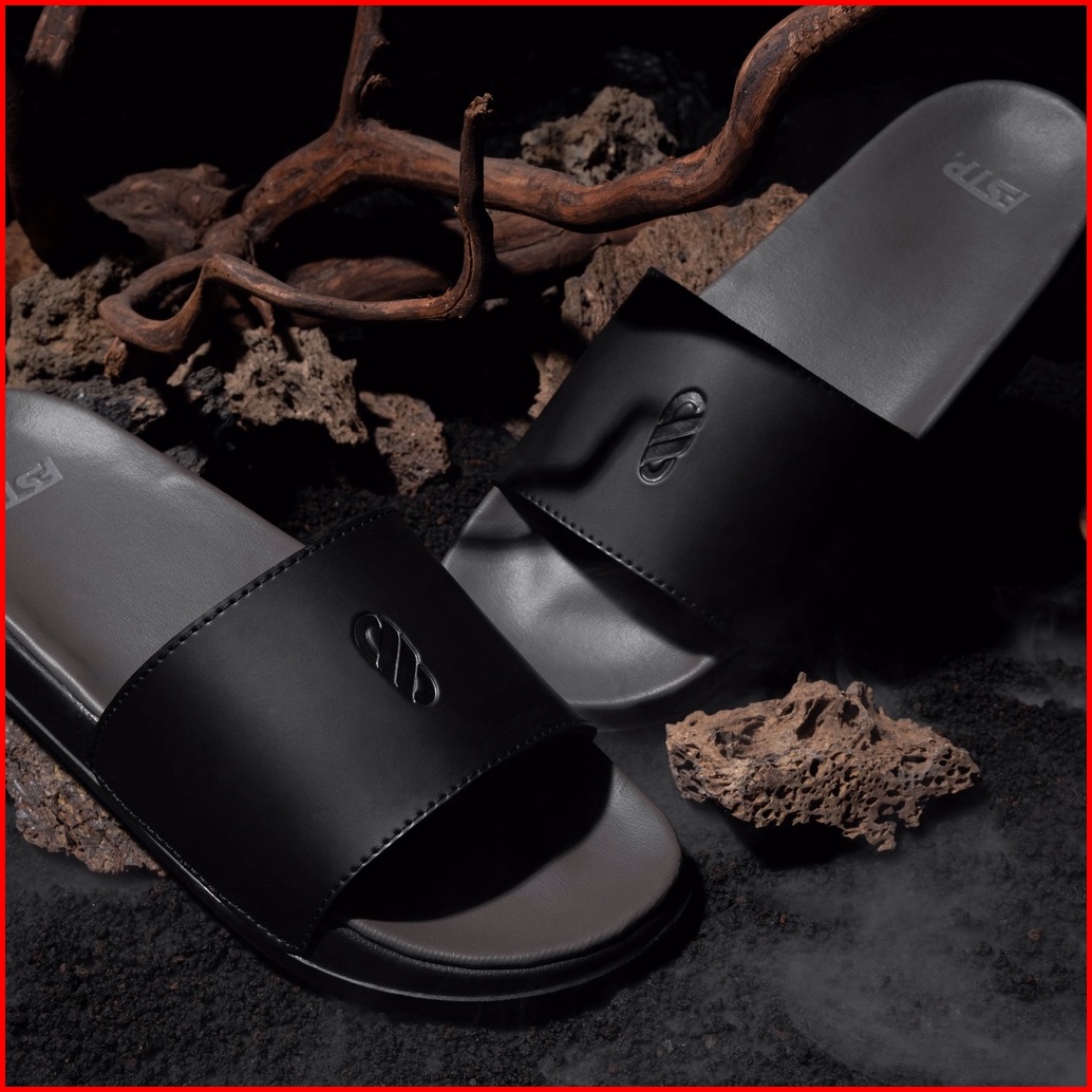 Sandal Pria Slide Footstep Footwear - Symbol V2 Full Black.