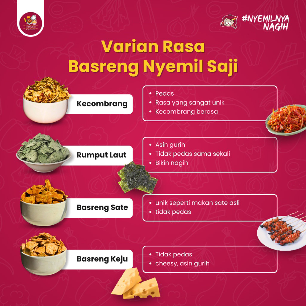BALADO, RENDANG, Rumput Laut, KEJU, SATE, Kecombrang, PEDAS DAUN JERUK, ORIGINAL DAUN JERUK