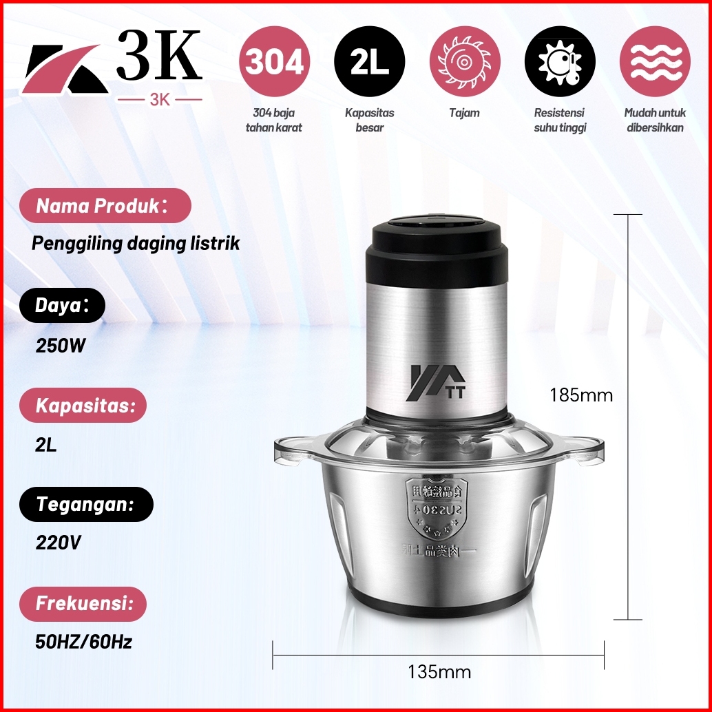 3k Surabaya Blender Chopper Bahan Stainless Steel Kapasitas 2l Penggiling Bumbu Daging Sayur Buah Food Processor