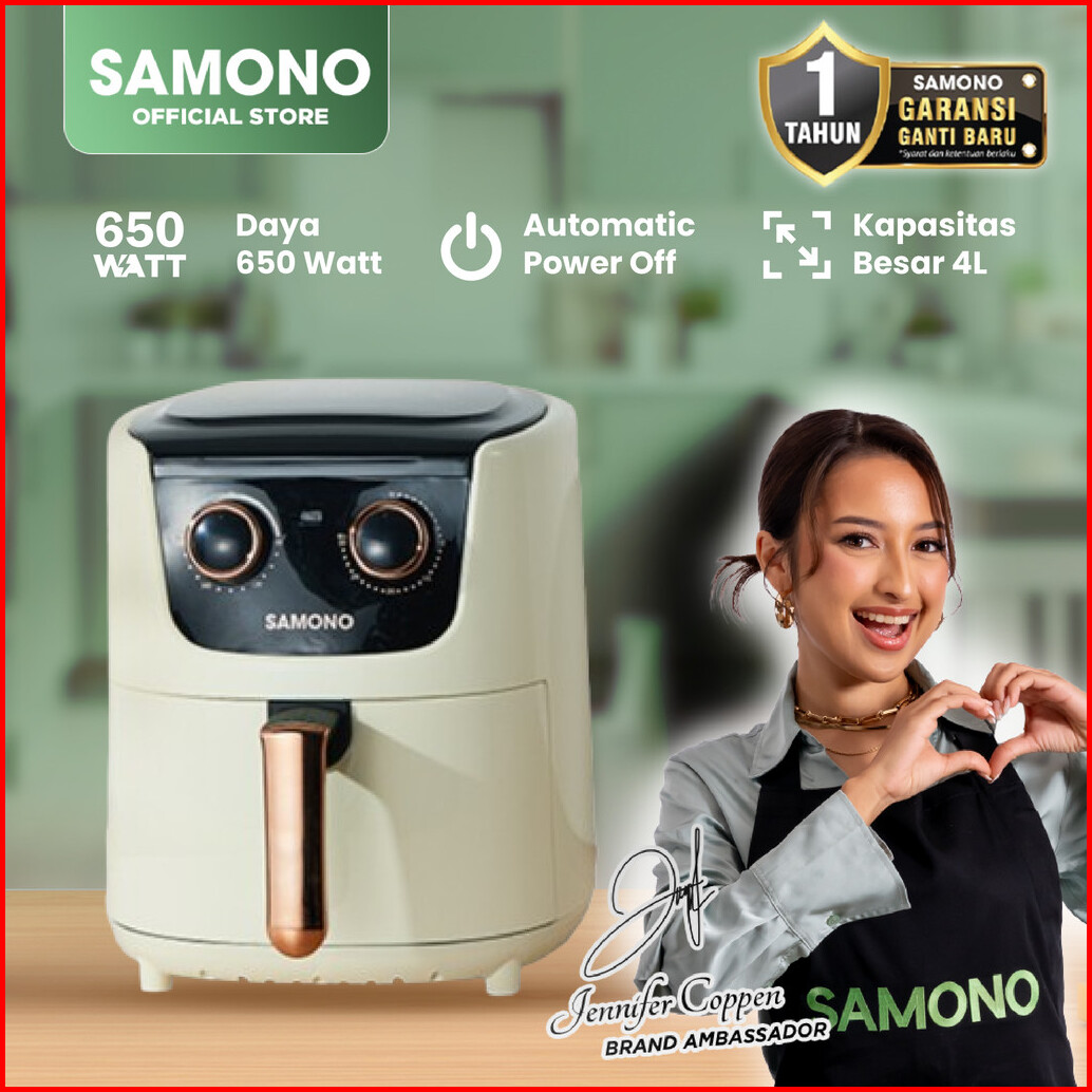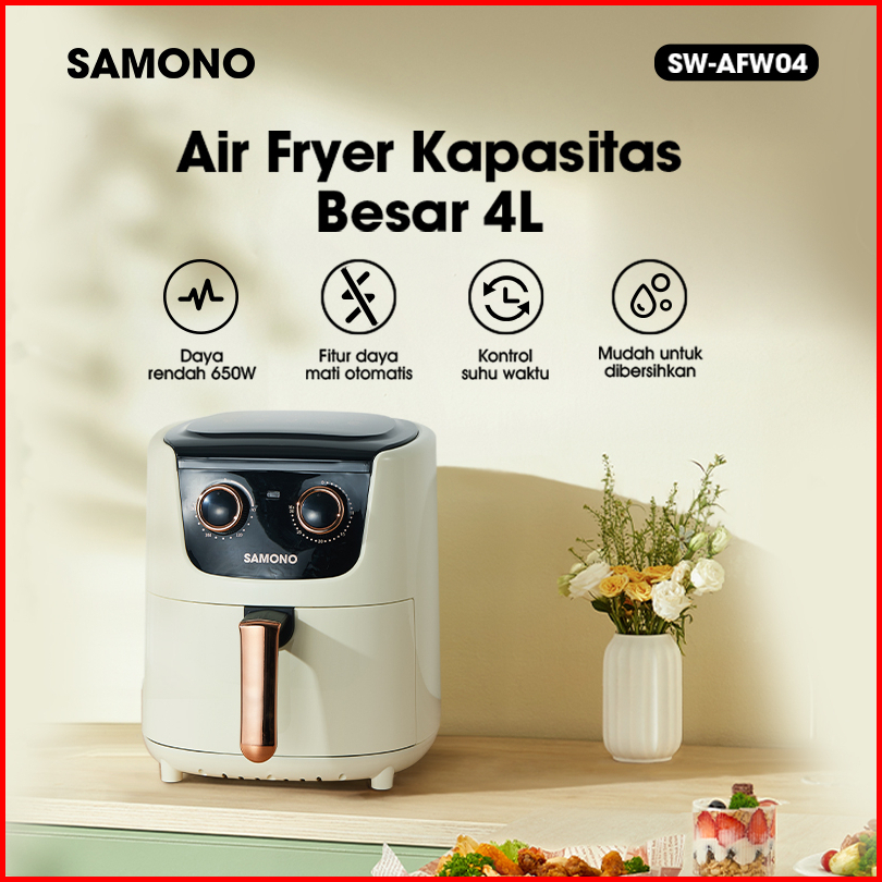 Samono Air Fryer 4 Liter 650 Low Watt Mesin Penggorengan Tanpa Minyak 7 Menu Masak Sw-afw04 White