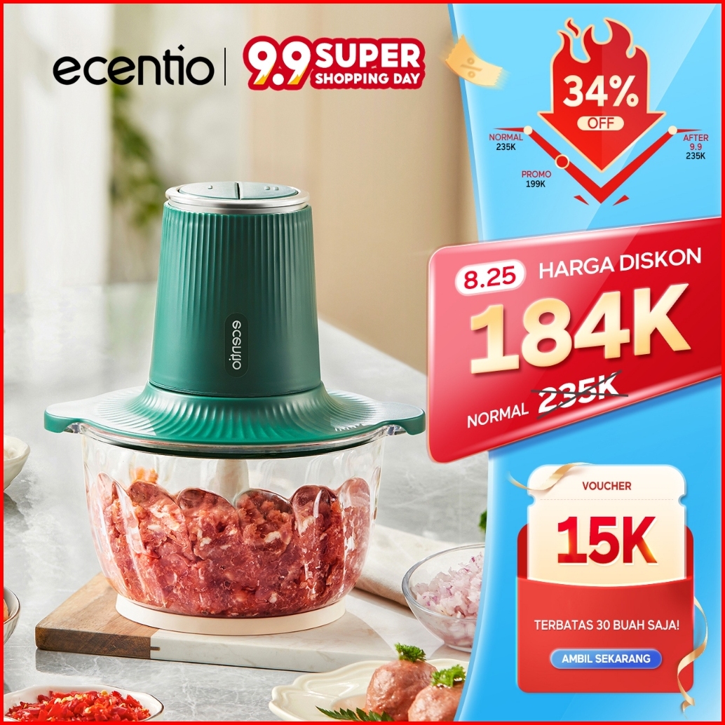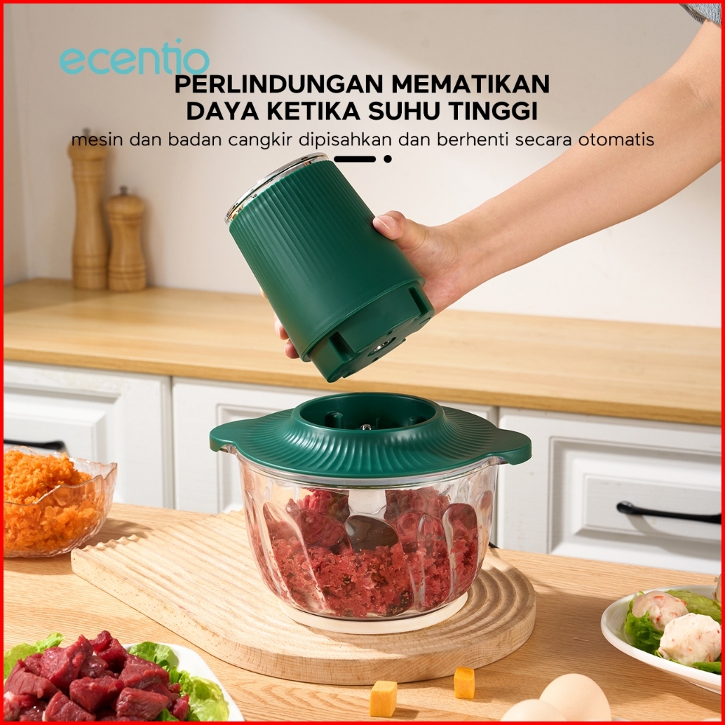 Ecentio 3 In 1 Food Processor Penggiling Daging 6 Mata Pisau 2l Kaca Chopper 350w Food Grade Mesin Giling Daging Mixer T