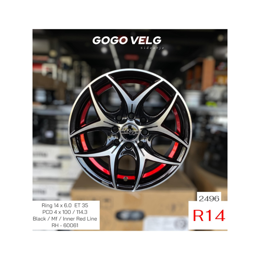 Velg Mobil Ring 14 RH PCD 4X100/114,3 ET 35 Lebar 6 Black Inner Red Avanza Agya Brio Nissan March