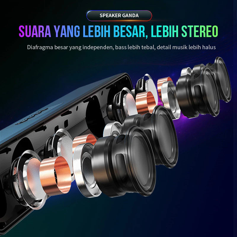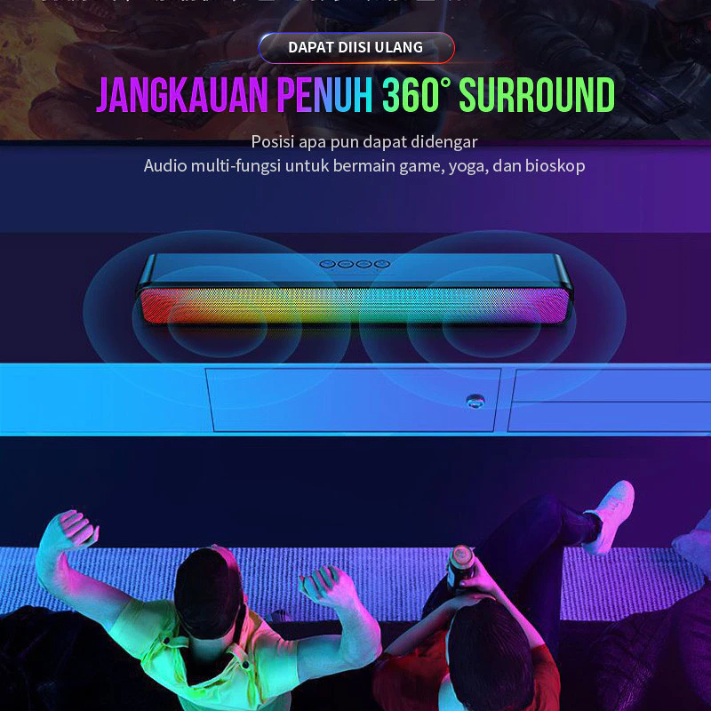 Speaker Bluetooth berwarna-warni cahaya dinamis 360 ° Dolby Surround suara layar penuh RGB desktop game speaker bar panj