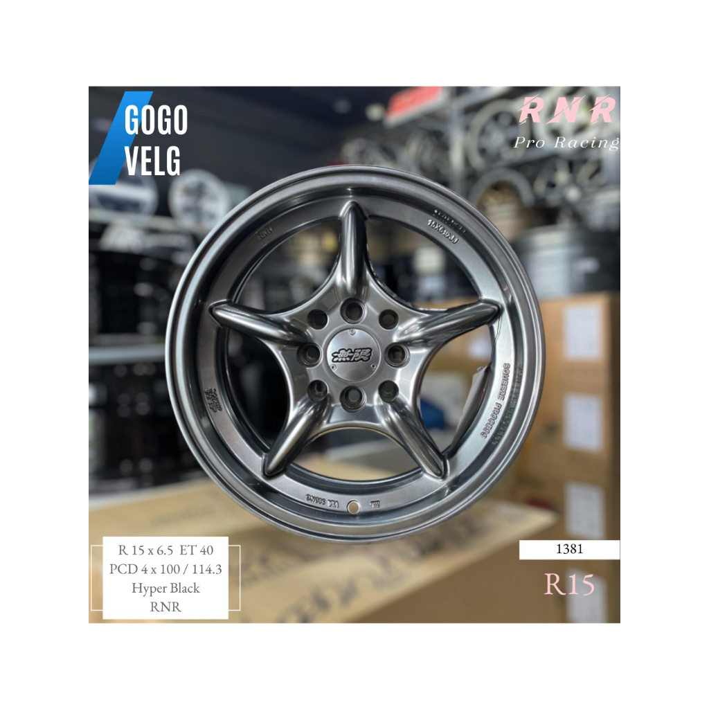 Velg Mobil R15 MUGEN RNR PCD 8X100/114,3 Hyper Black Lebar 6,5 Yaris Brio Avanza Agya Calya Ring 15