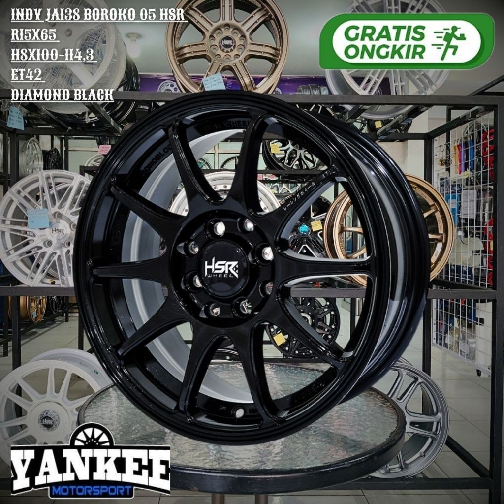 Pelek Racing HSR INDY BOROKO 05 RING 15 Lebar 6,5 double PCD Velg mobil JAZZ,YARIS,FREED,SWIFT