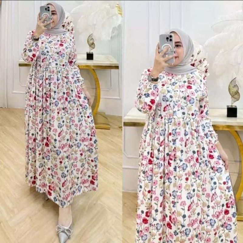 MIDI DRES WANITA, RAYON MOTIF TERBARU, MODEL KEKINIAN, SIMPEL NYAMAN