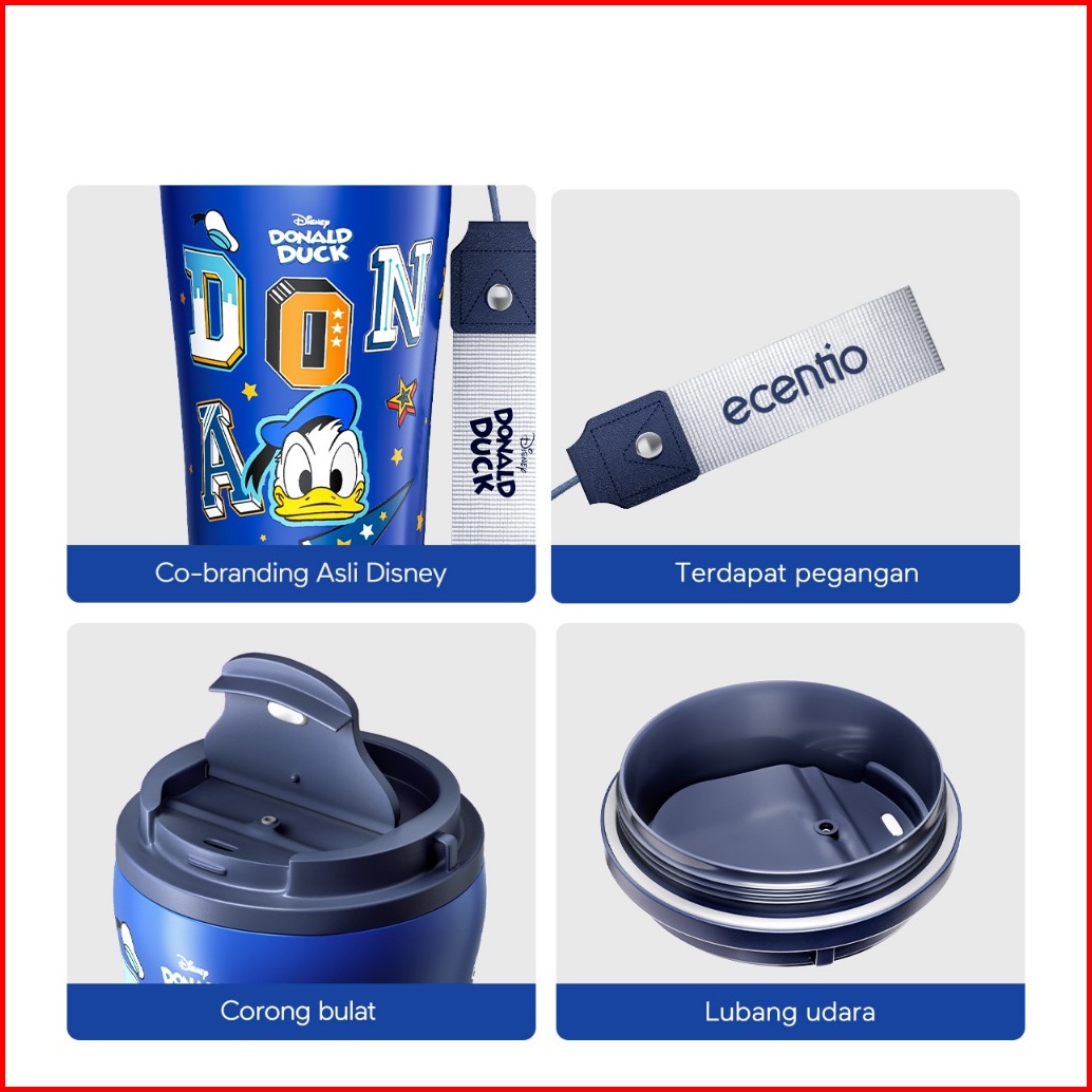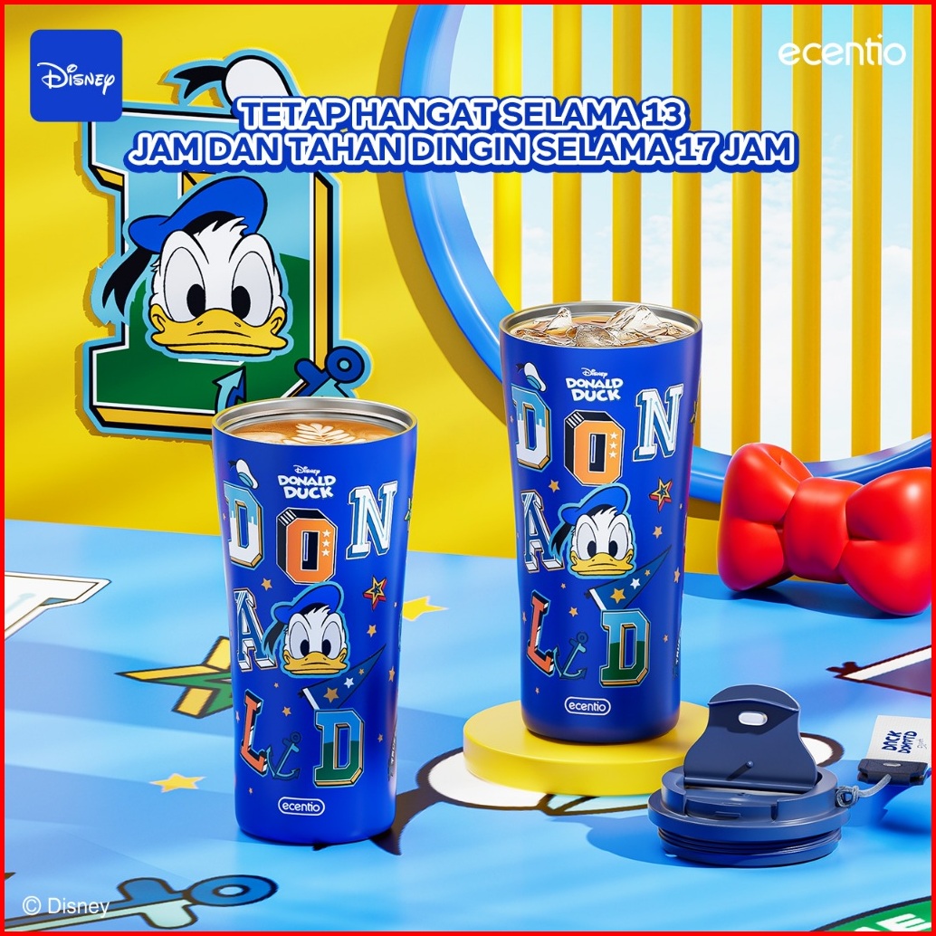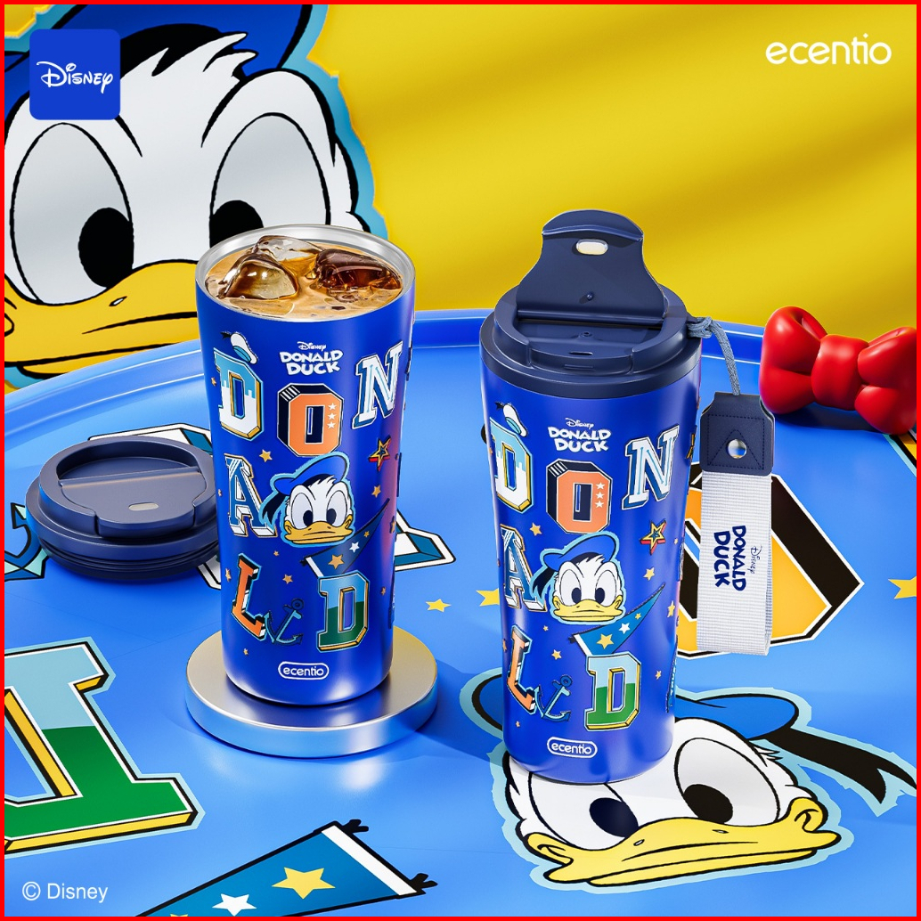 Newecentio Tumbler Minum Stainless 480ml Aesthetic Disney Donald Duck Tahan Dingin Selama 17 Jam Gelas Kopi Botol Tahan