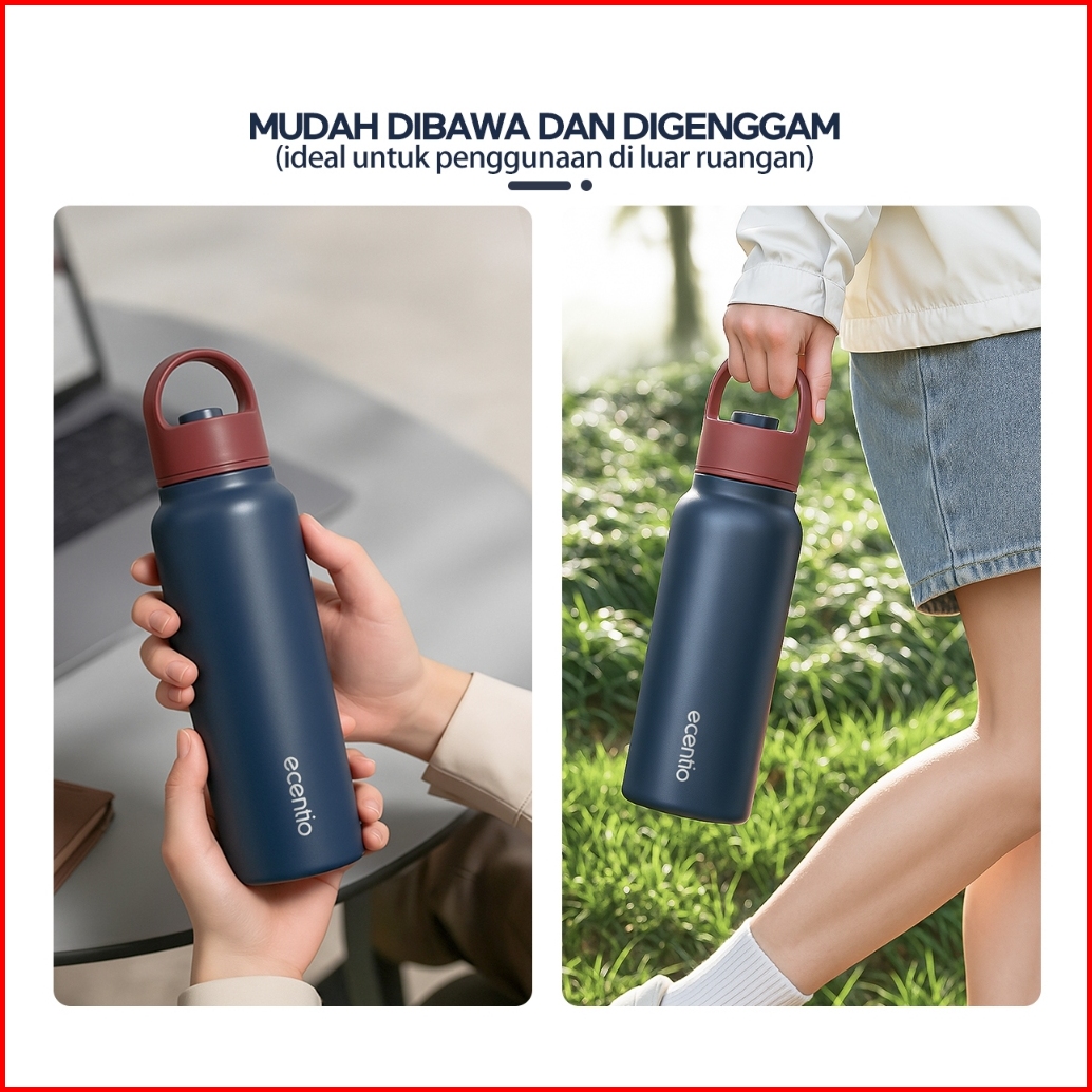 Ecentio Tumbler Minum Sport Lari Olahraga 650ml Termos Tumbler Tempat Outdoor Travel Size Mini Tahan Panas Dingin 24 Jam