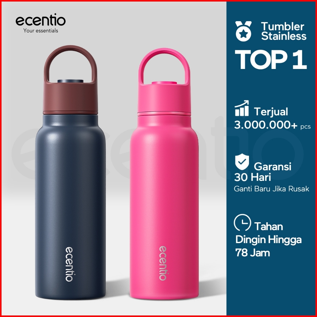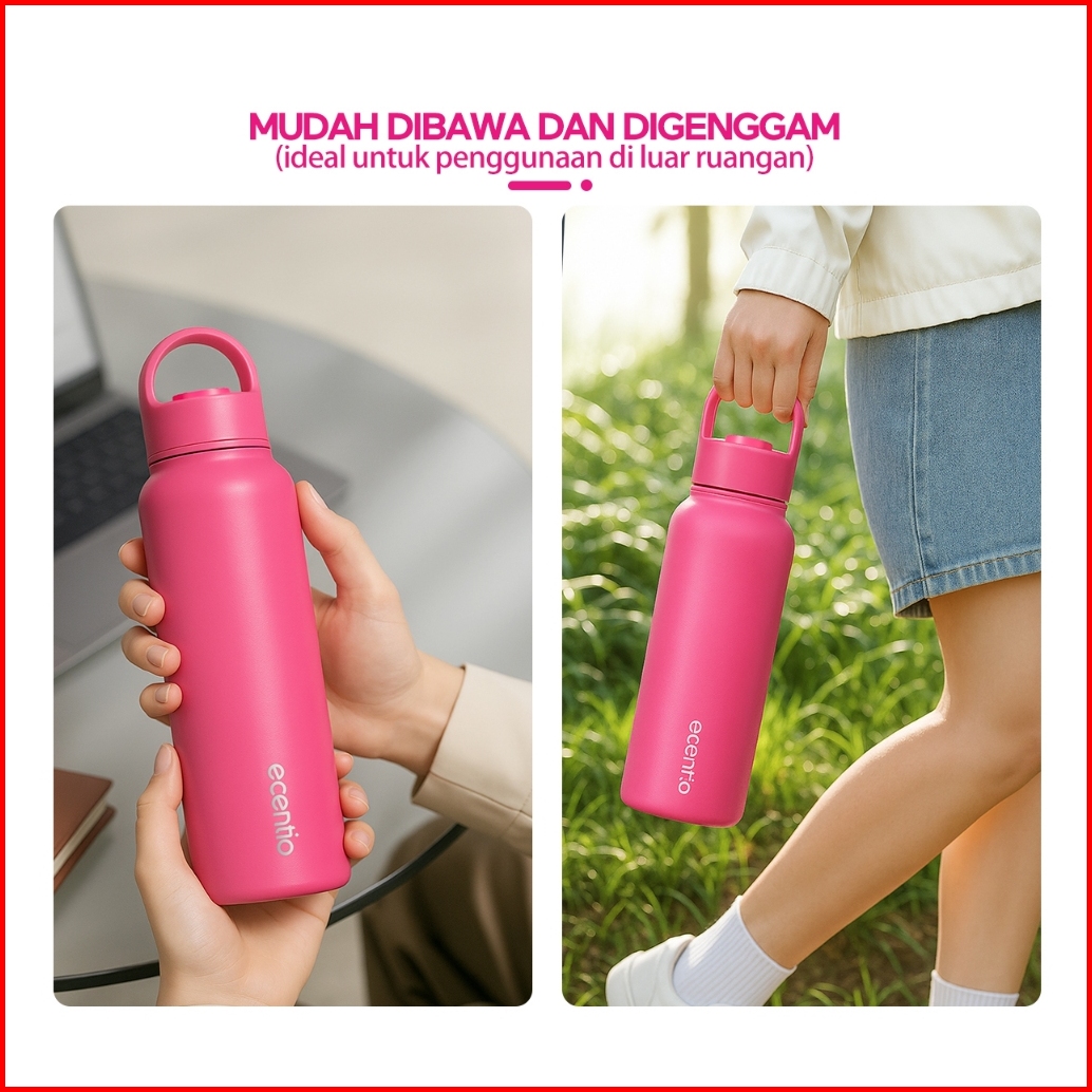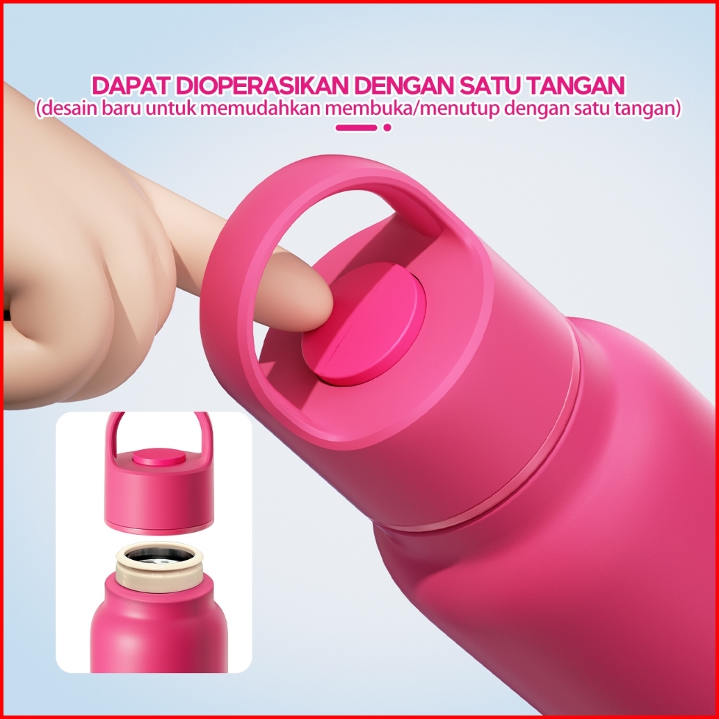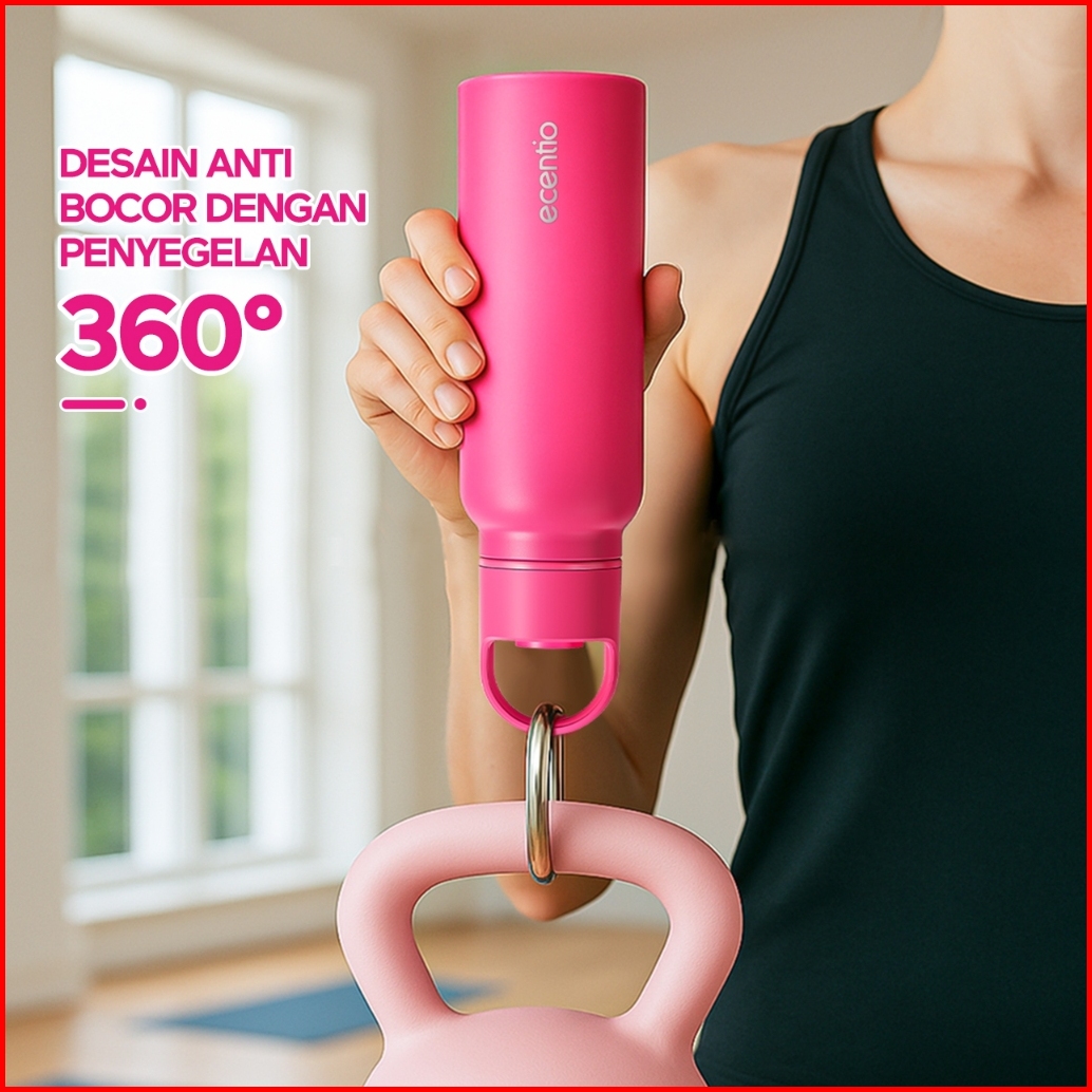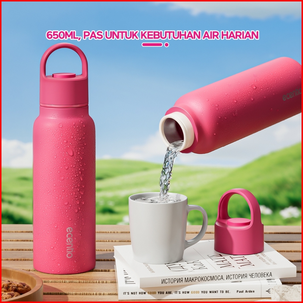 Ecentio Tumbler Minum Stainless Pink Dapat Membuka Tutup Dengan Satu Tangan Sport Lari Olahraga 650ml Termos Tumbler Tah